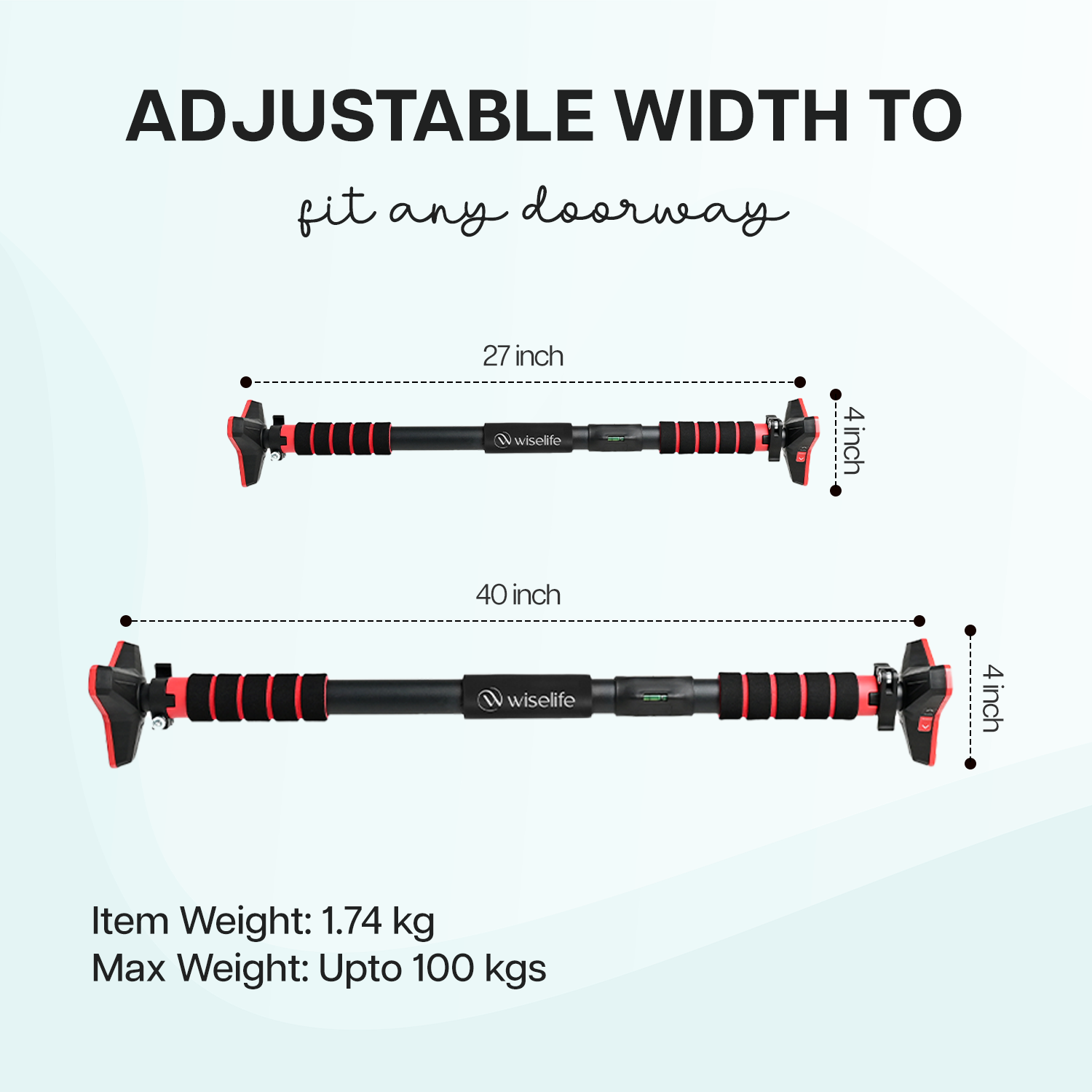 • ADJUSTABLE LENGTH: WiseLife Pull-Up Bar is designed in such a way that you can make it fit in between any Door frame and wall mount from a length of 27-40 inches.