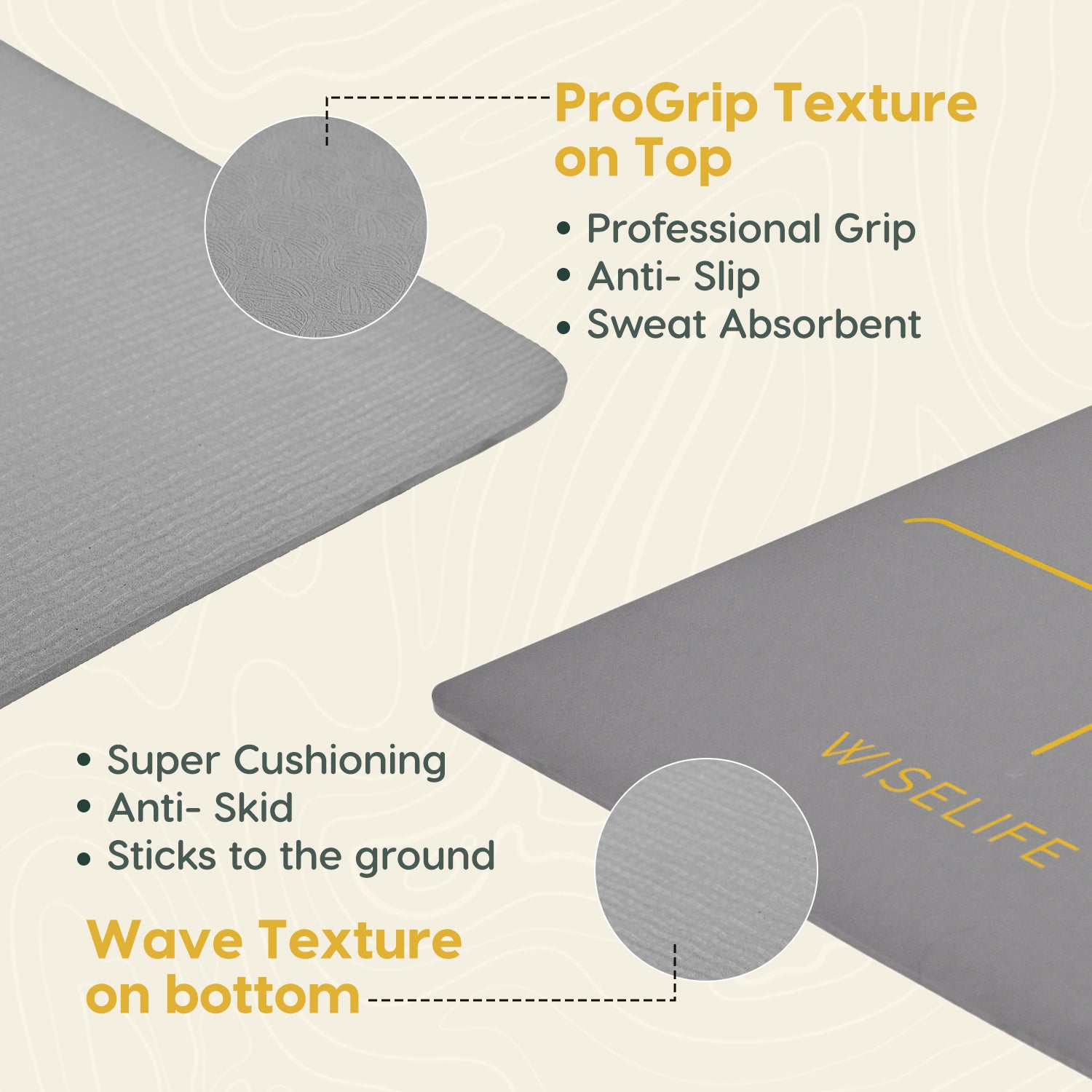 - DUAL SIDE NON-SLIP TEXTURE : Dual textured surface makes the mat stick firmly to the ground, preventing slipping on any floor. The top side features a tactile surface that enhances grip, while the bottom is designed with a sturdy, anti-slip texture to keep the mat anchored to the floor during your most dynamic poses