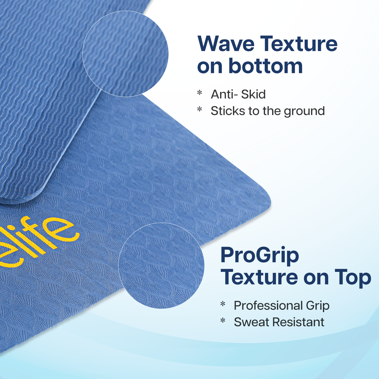 - DUAL SIDE NON-SLIP TEXTURE : Dual textured surface makes the mat stick firmly to the ground, preventing slipping on any floor. The top side features a tactile surface that enhances grip, while the bottom is designed with a sturdy, anti-slip texture to keep the mat anchored to the floor during your most dynamic poses