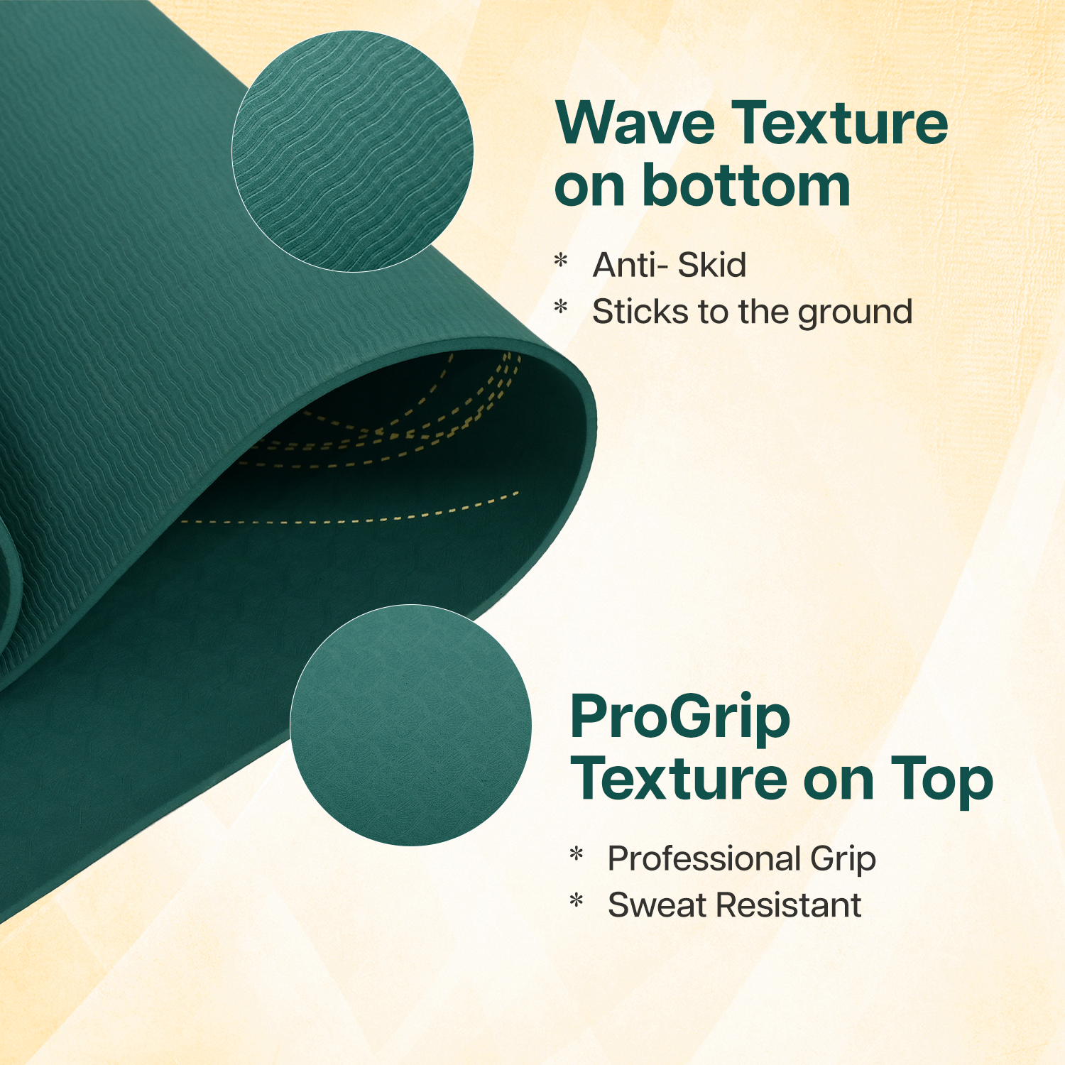 - DUAL SIDE NON-SLIP TEXTURE : Dual textured surface makes the mat stick firmly to the ground, preventing slipping on any floor. The top side features a tactile surface that enhances grip, while the bottom is designed with a sturdy, anti-slip texture to keep the mat anchored to the floor during your most dynamic poses