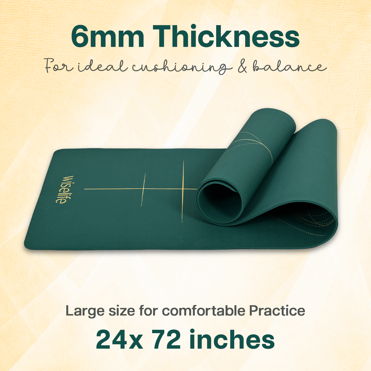 - OPTIMUM THICKNESS, LONG & WIDE DIMENSIONS : Designed to offer an optimum balance, comfort and stability, this mat supports your joints while maintaining a firm, grounded surface. Extra-long and wide (72” x 24”) to comfortably fit all body types. The premium thickness provides cushioning for comfort, while ensuring stability during intense poses