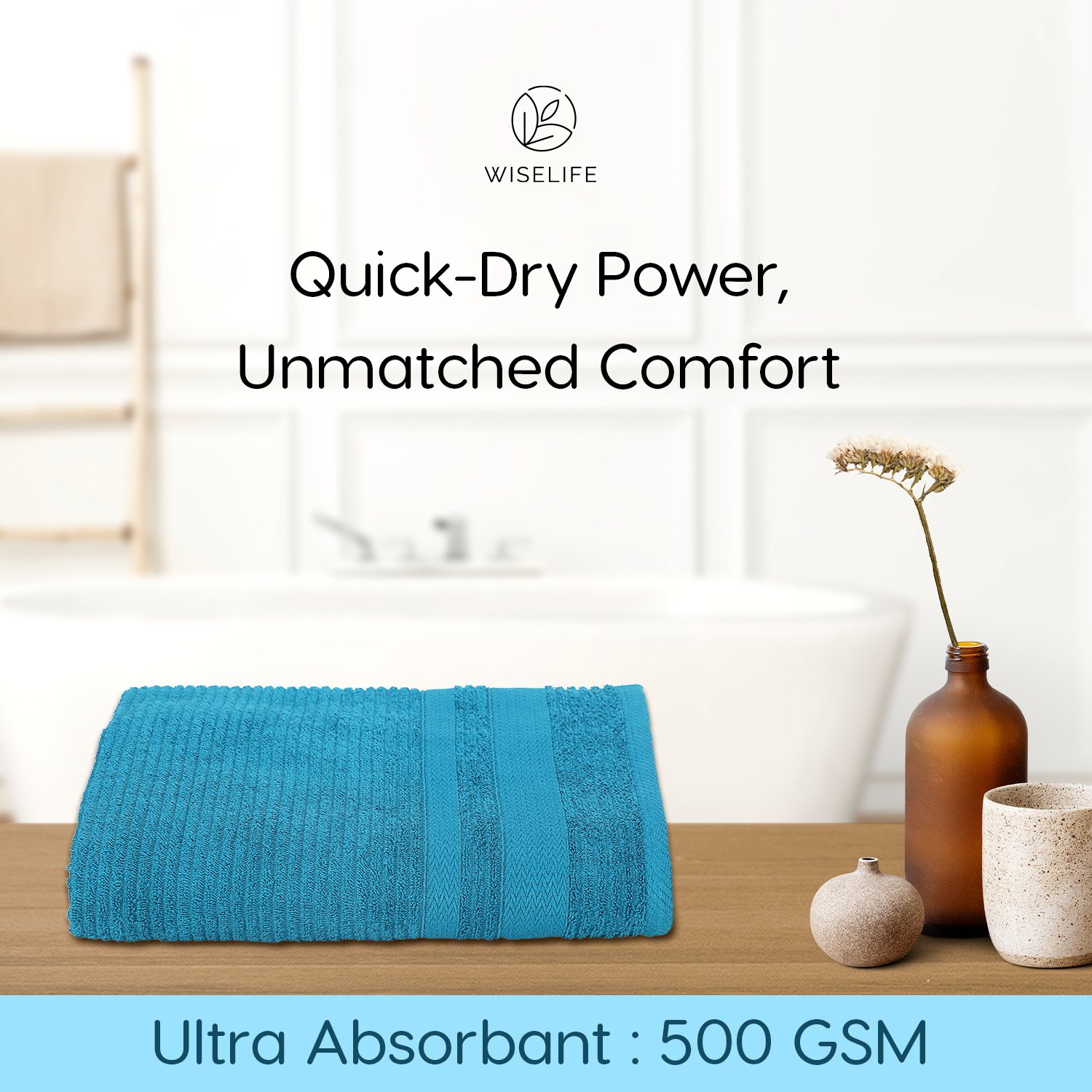100% PURE COTTON: Crafted from premium 100% cotton, the WiseLife bath towel provides a luxurious feel that is ultra-soft and gentle on the skin. The natural fibers offer breathability, making it perfect for sensitive skin and daily use after showers, baths, or pool time