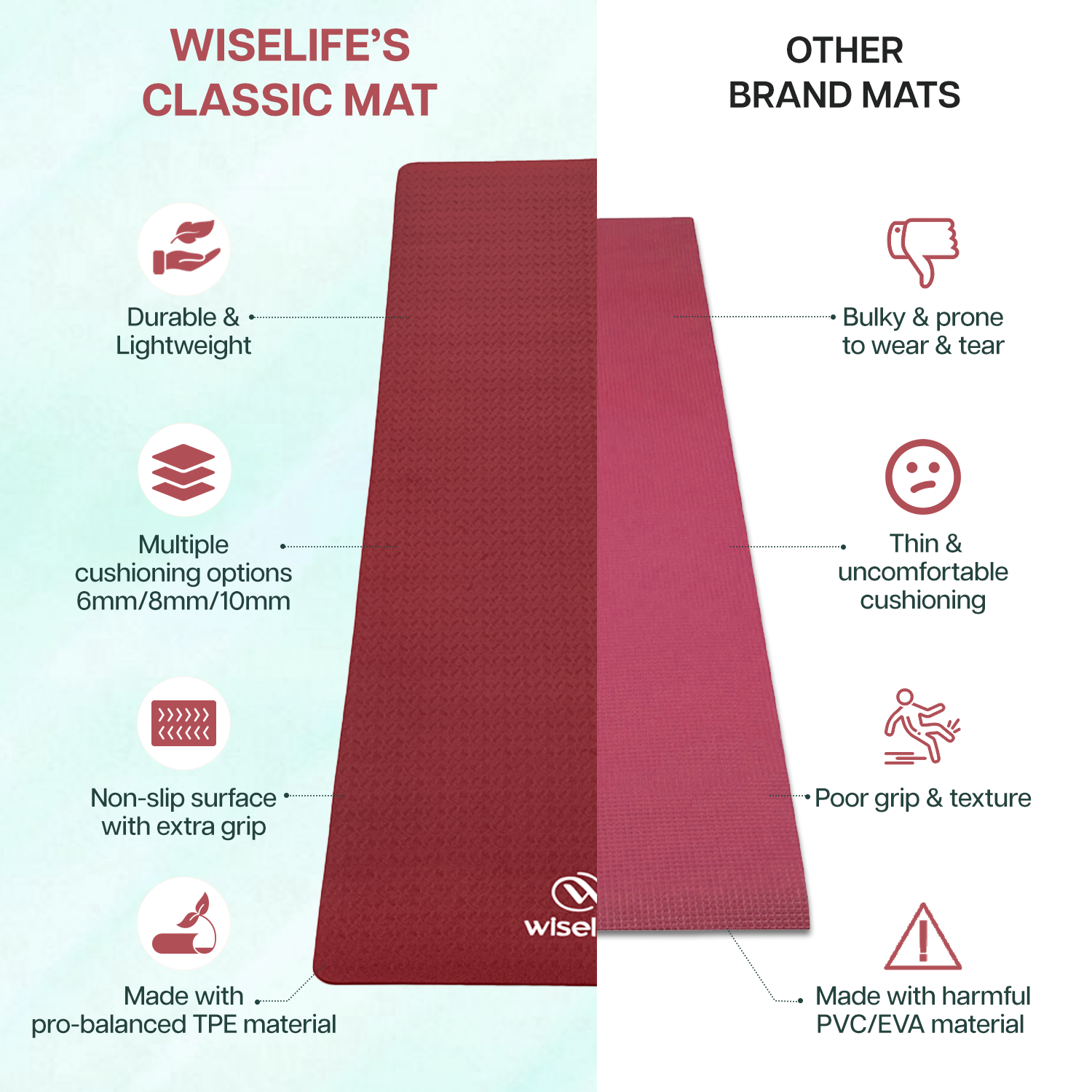 - PREMIUM ECO-TPE MATERIAL : Made from high quality, eco-friendly, and non-toxic ECO-TPE material for a holistic yoga and fitness experience. The material provides a smooth, comfortable surface while being free from harmful chemicals, ensuring a healthier experience for both you and the environment