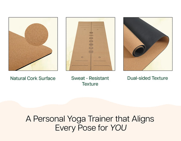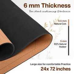 - PREMIUM CORK AND NATURAL RUBBER MATERIAL: The top layer is made from naturally sourced, high-quality & premium Cork, this mat provides a natural and comfortable surface for your yoga and fitness practice. The 100% natural rubber base delivers exceptional grip and traction. The material is free from harmful chemicals, ensuring a healthier experience for both you and the environment
