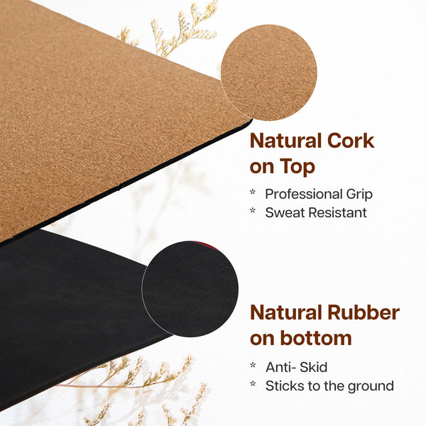 - PREMIUM CORK AND NATURAL RUBBER MATERIAL: The top layer is made from naturally sourced, high-quality & premium Cork, this mat provides a natural and comfortable surface for your yoga and fitness practice. The 100% natural rubber base delivers exceptional grip and traction. The material is free from harmful chemicals, ensuring a healthier experience for both you and the environment