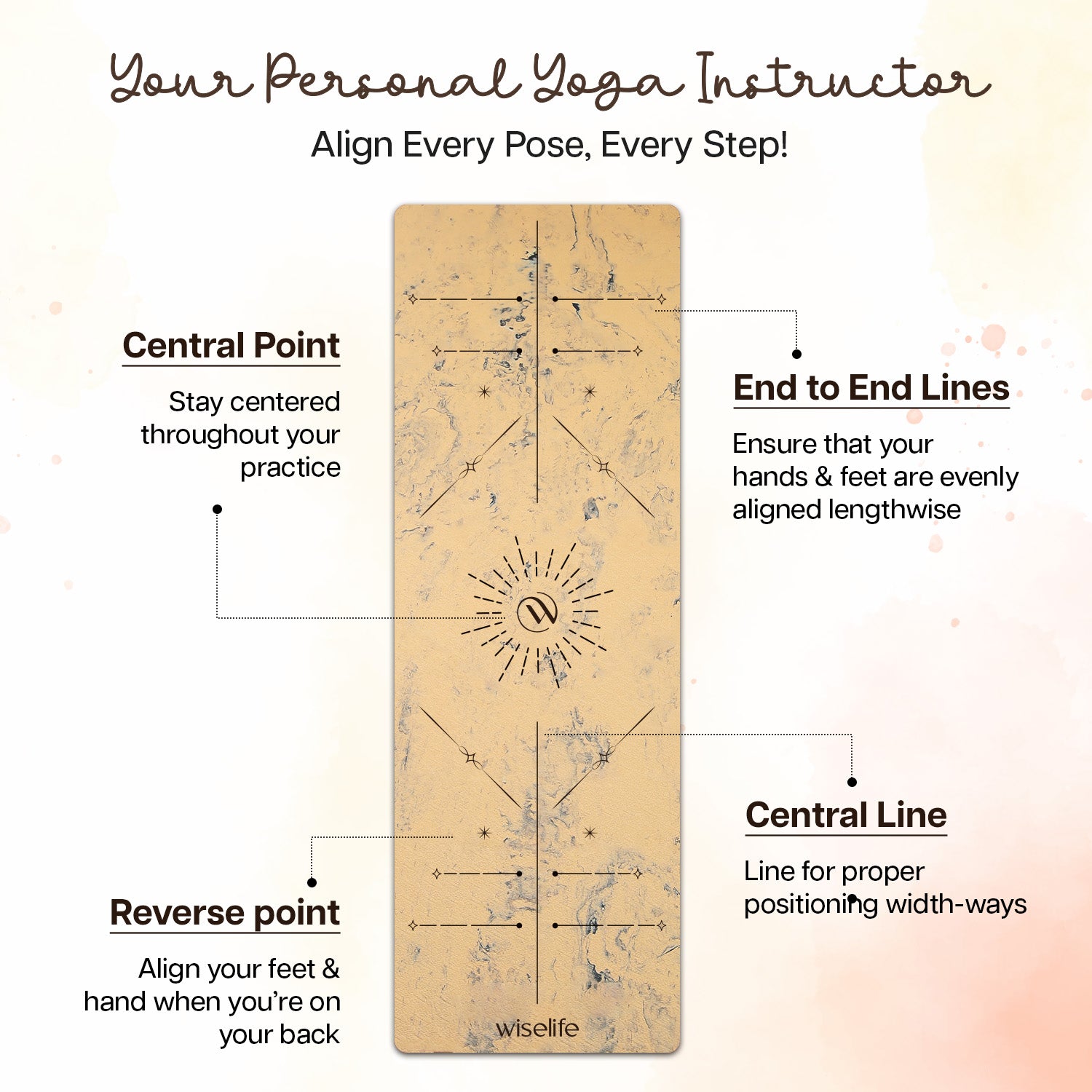 - CELESTIAL ALIGNMENT DESIGN – The Starry Alignment pattern provides a beautiful, functional guide for perfect posture and alignment during yoga and exercise.Whether you're trying a new pose or refining an existing one, or following online classes, these visual cues offer gentle guidance for optimum alignment. Ideal for both beginners and advanced practitioners, the design boosts confidence and helps ensure you fully benefit from each pose