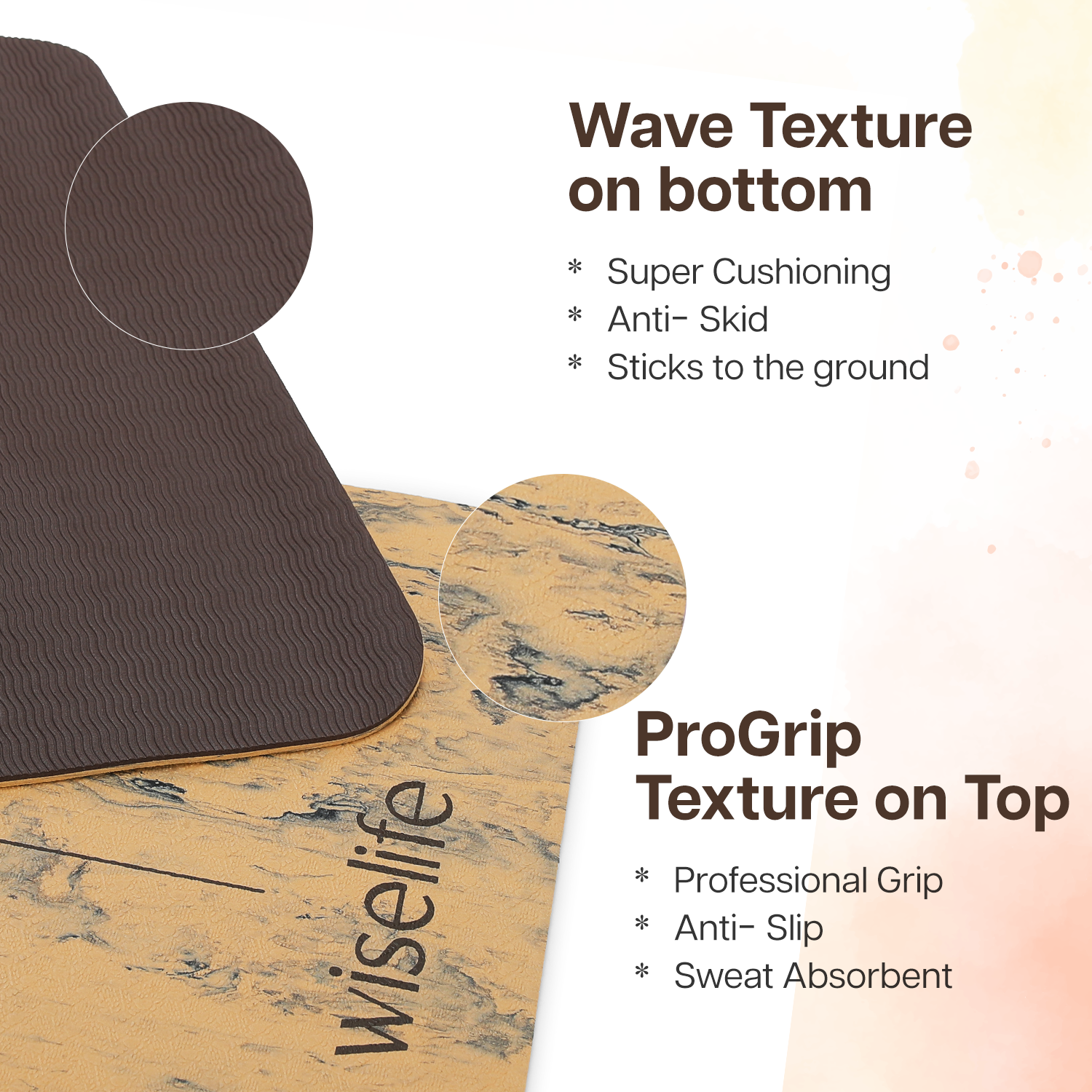 - DUAL LAYER FOR EXTRA DURABILITY : Dual textured surface makes the mat stick firmly to the ground, preventing slipping on any floor. The top side features a ProGrip surface that enhances professional grip, while the bottom is designed with a wave texture to keep the mat anchored to the floor. This mat offers enhanced resilience, comfort, and longevity for daily workouts