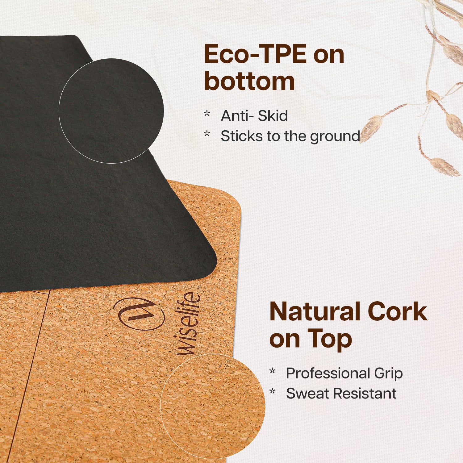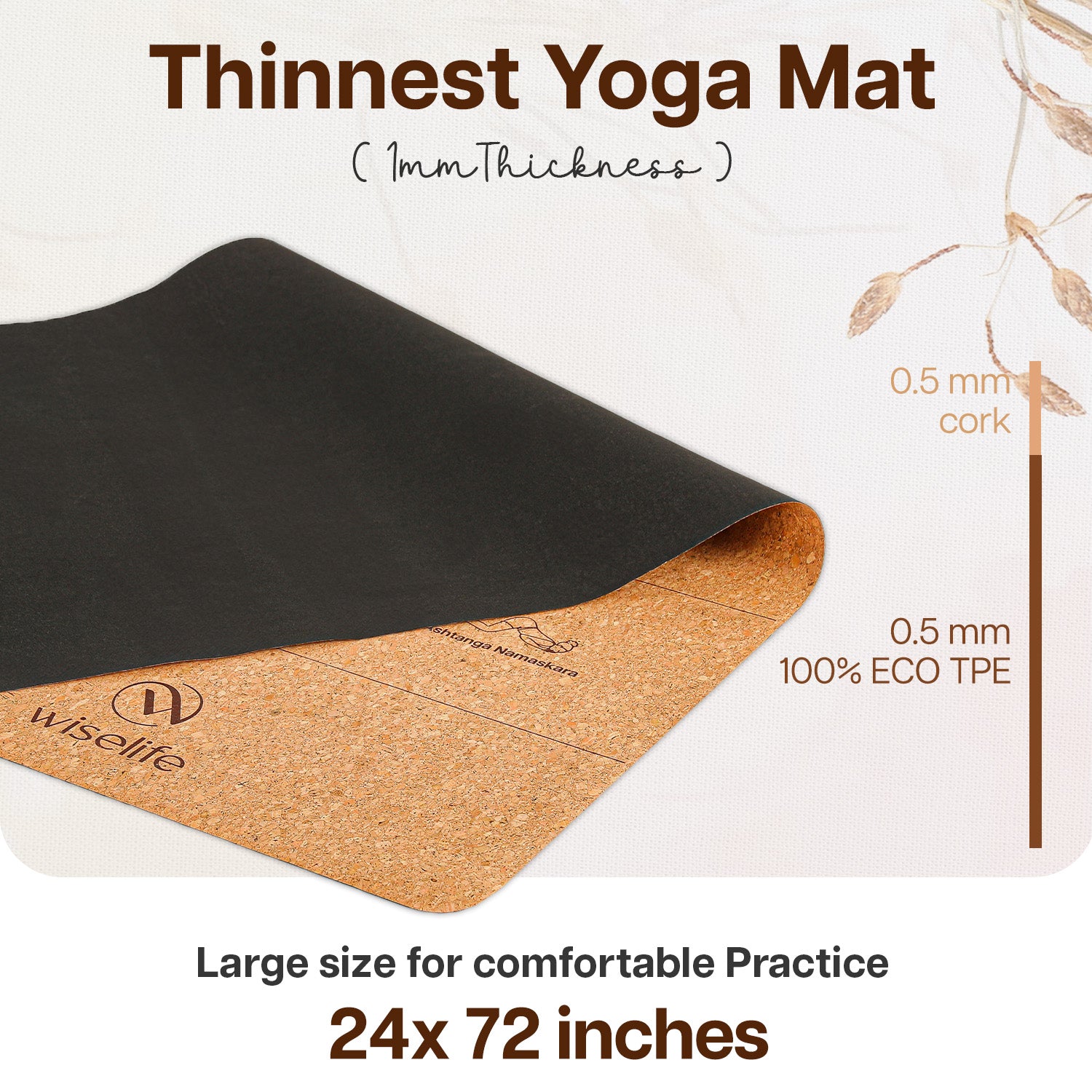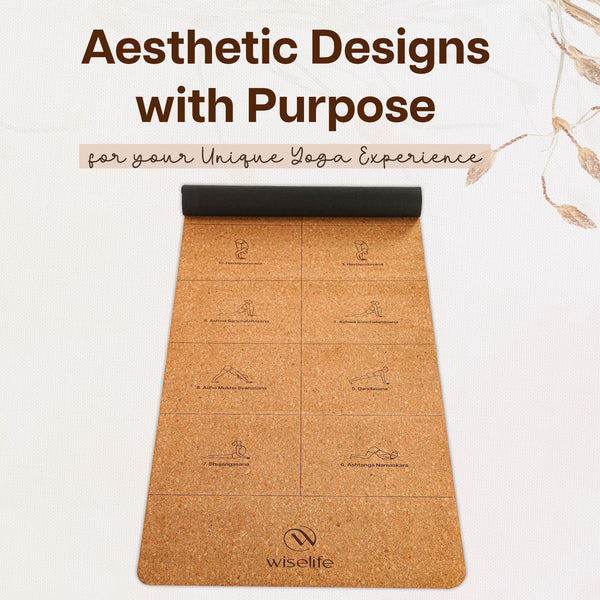 -PREMIUM CORK SURFACE : Made from high-quality, natural cork, this yoga mat offers a naturally antimicrobial and moisture-resistant surface, ensuring cleanliness and durability. The cork material provides a firm and stable grip, making it perfect for even the most intense or sweaty workouts
