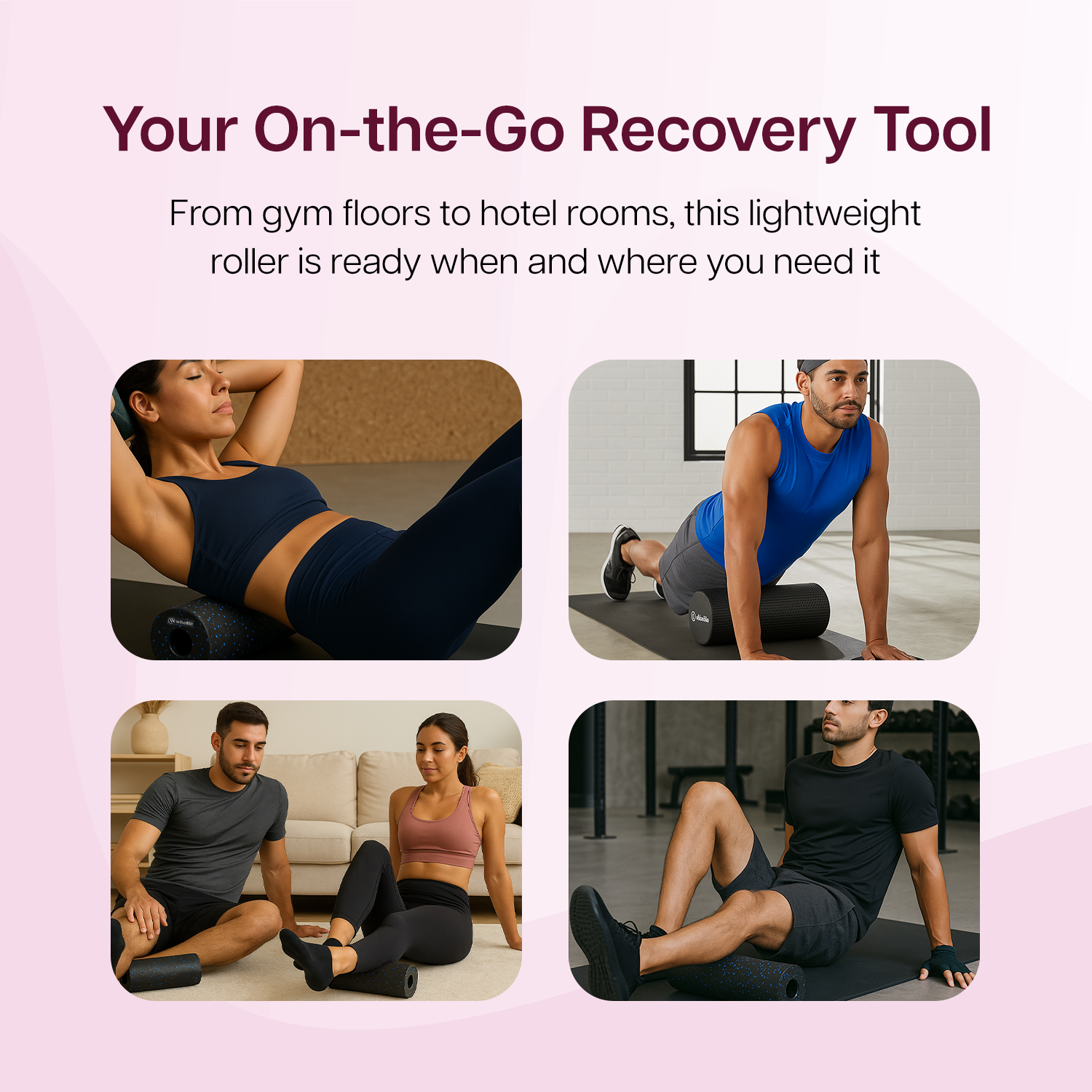 VERSATILE & EASY TO USE: Compact and easy to carry, this foam roller is perfect for use at home, in the gym, or on-the-go. Whether you're seeking relief from back pain, improving flexibility, or warming up before a workout, it’s the ideal tool for achieving full-body relief wherever you are