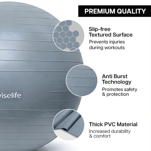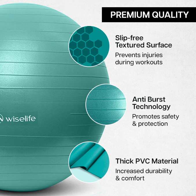 • Top Quality Material: Wiselife exercise ball is made of professional GYM grade PVC material, and pregnant women can also use it with confidence. It has been rigorously weight tested to withstand at least 100kg.