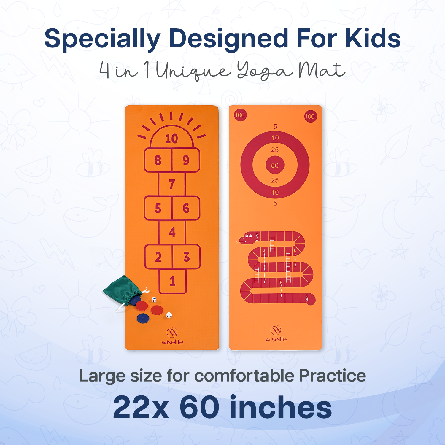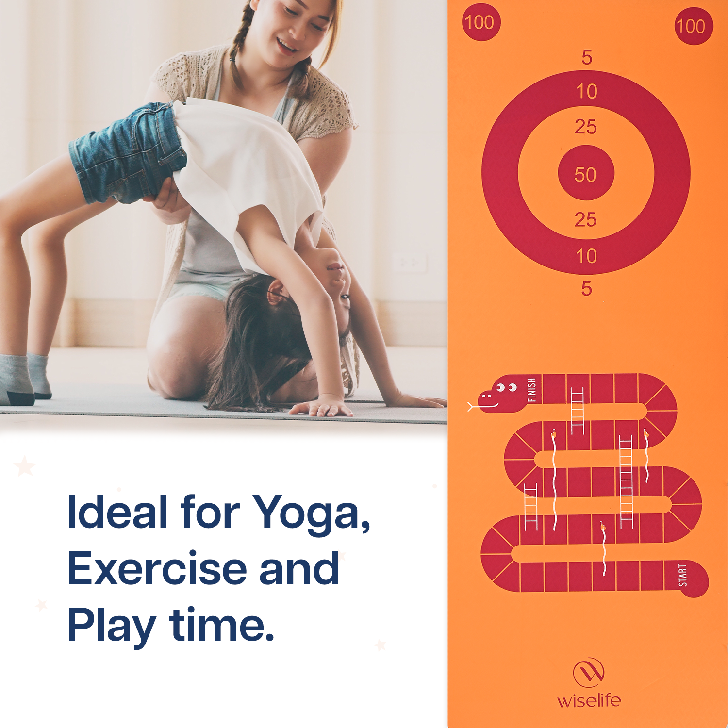 - PLAY & EXERCISE YOGA MAT : This mat is a unique blend of wellness and play, designed to encourage children to practice yoga while enjoying interactive games. This one-of-a-kind mat makes exercise exciting and accessible, combining fitness with playfulness for a well-rounded experience that nurtures both body and mind.