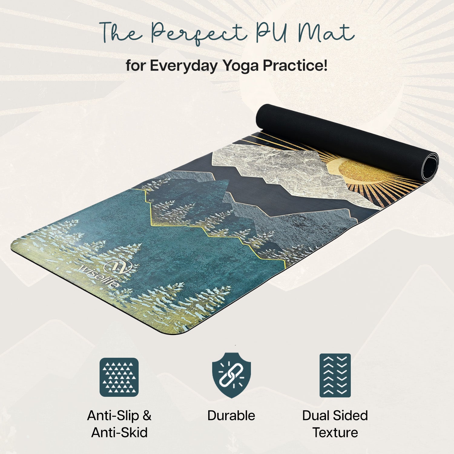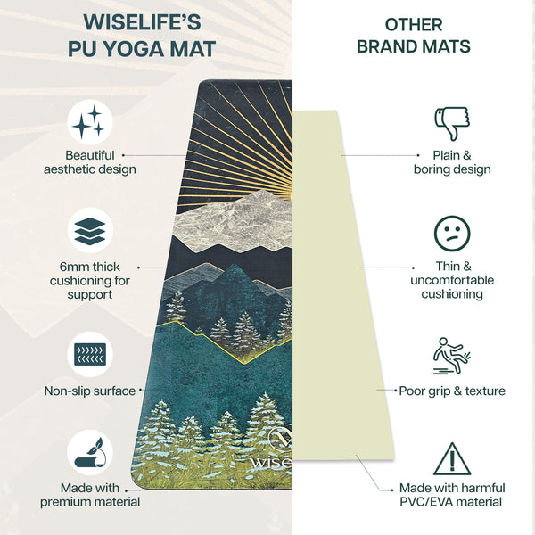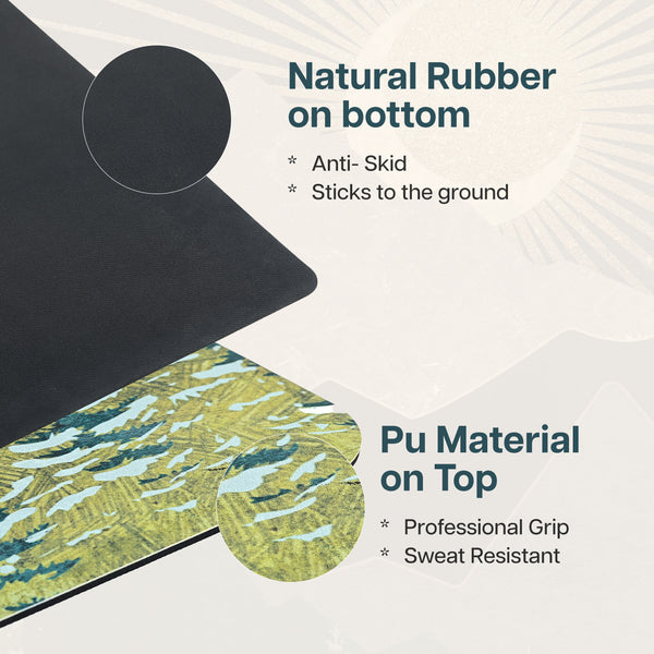 - PREMIUM PU & NATURAL RUBBER : The top layer of the mat is made from a high-quality PU which offers exceptional comfort, balance, and a luxurious feel. The 100% natural rubber base provides professional grip and stability, ensuring your mat stays securely in place during every pose