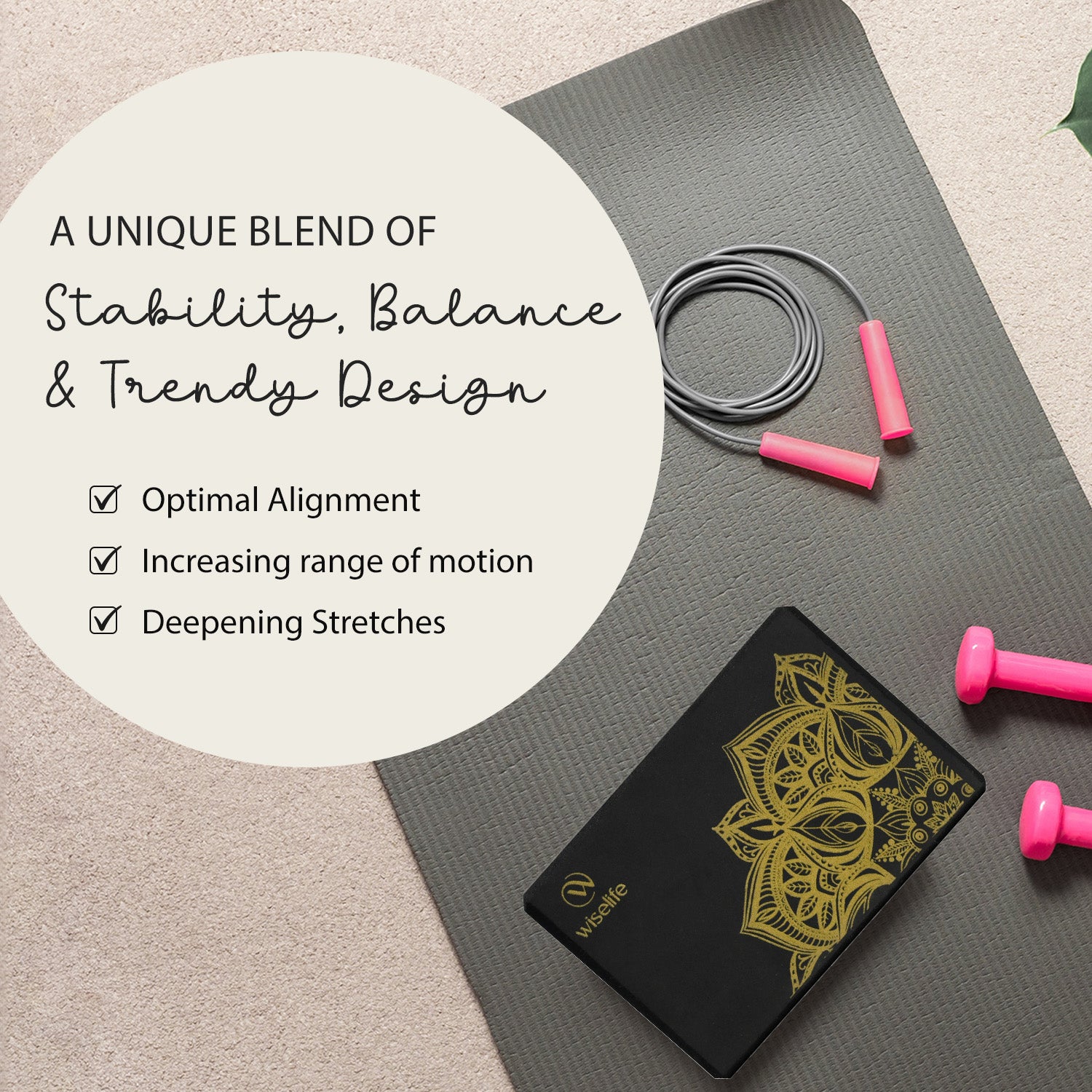 - SUPERIOR TRACTION, FLEXIBILITY & SUPPORT: The Wiselife Printed Yoga Block offers superior traction and flexibility to help you achieve balance, strength, and stability during challenging yoga poses. Its firm structure supports your practice, whether you're building strength through balance poses or enhancing flexibility during deep stretches