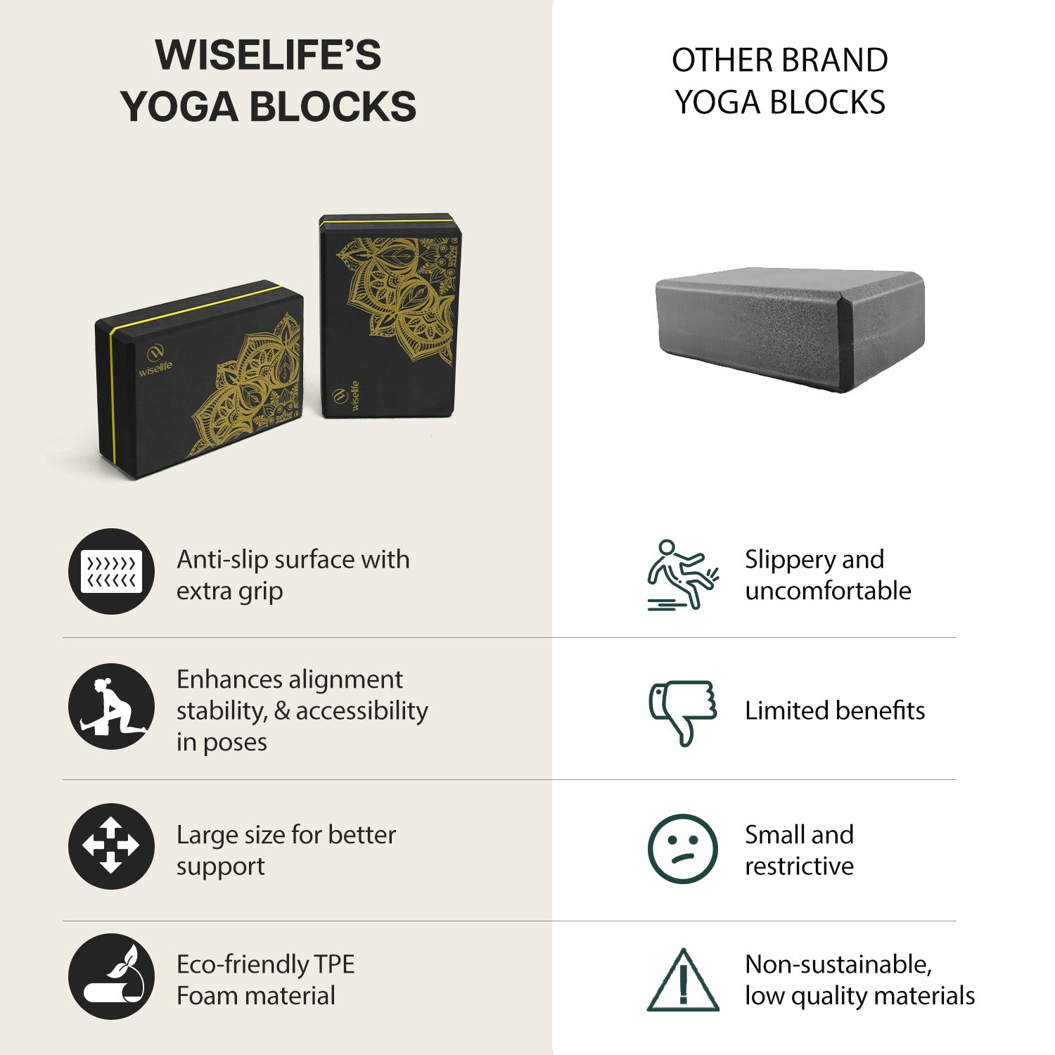 - VERSATILE FOR ALL TYPES OF PRACTICE: Designed to support a wide range of fitness activities, the Wiselife Classic Yoga Block is perfect for yoga, Pilates, meditation, stretching, physical therapy, and core strengthening. Its multifunctional use makes it a must-have accessory for home workouts, studio sessions, and travel routines alike