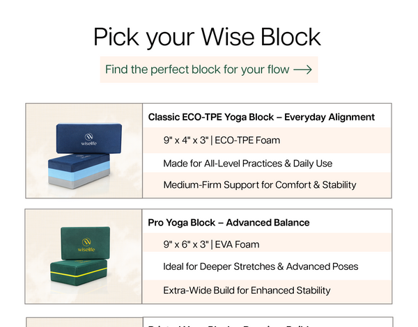 - VERSATILE FOR ALL TYPES OF PRACTICE: Designed to support a wide range of fitness activities, the Wiselife Classic Yoga Block is perfect for yoga, Pilates, meditation, stretching, physical therapy, and core strengthening. Its multifunctional use makes it a must-have accessory for home workouts, studio sessions, and travel routines alike