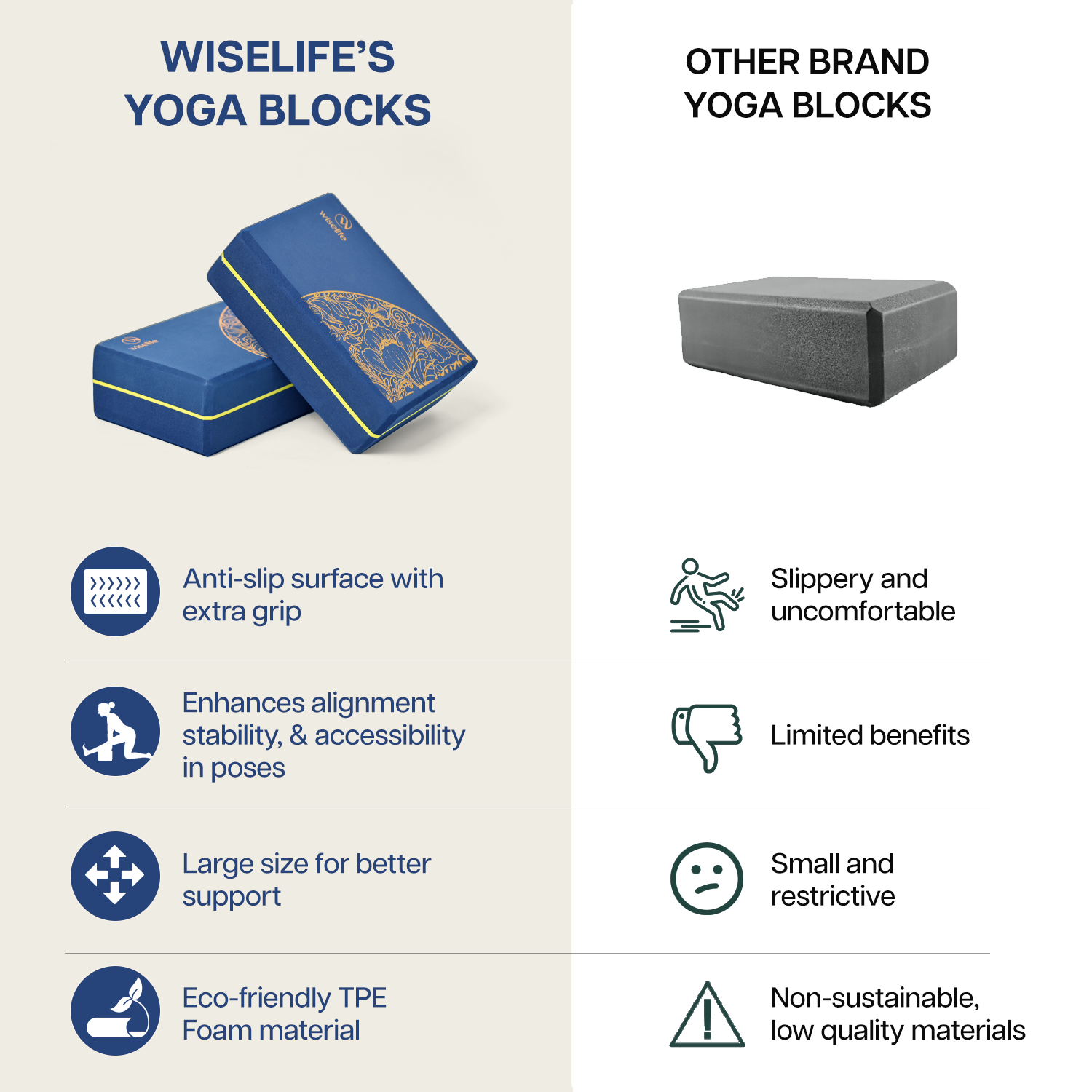 - VERSATILE FOR ALL TYPES OF PRACTICE: Designed to support a wide range of fitness activities, the Wiselife Classic Yoga Block is perfect for yoga, Pilates, meditation, stretching, physical therapy, and core strengthening. Its multifunctional use makes it a must-have accessory for home workouts, studio sessions, and travel routines alike