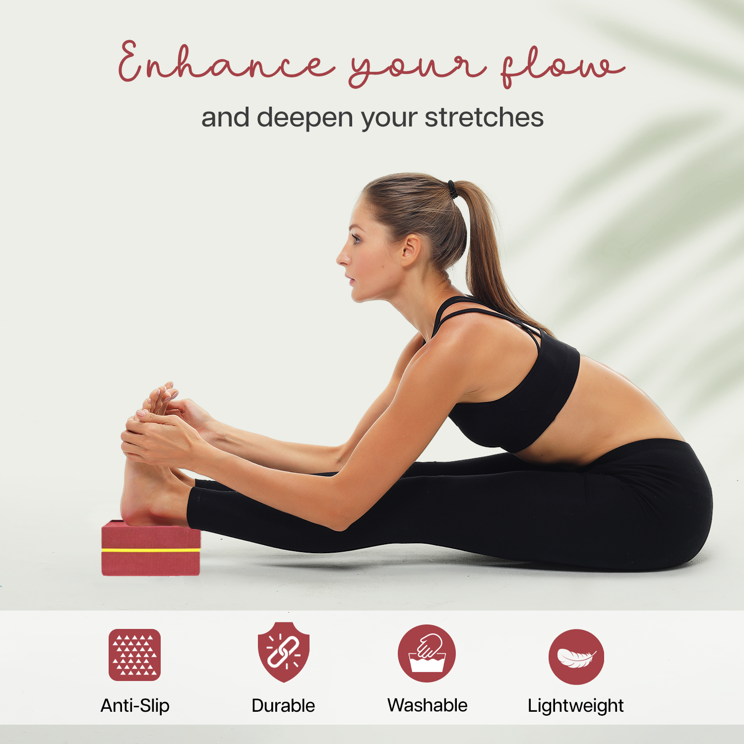 - EXTRA LARGE SIZE FOR BETTER SUPPORT: Comes as a set of 2 blocks, each measuring 9 x 6 x 3 inches, offering excellent stability and balance during your practice. Ideal for deep stretches, seated postures, and added lift in challenging poses.