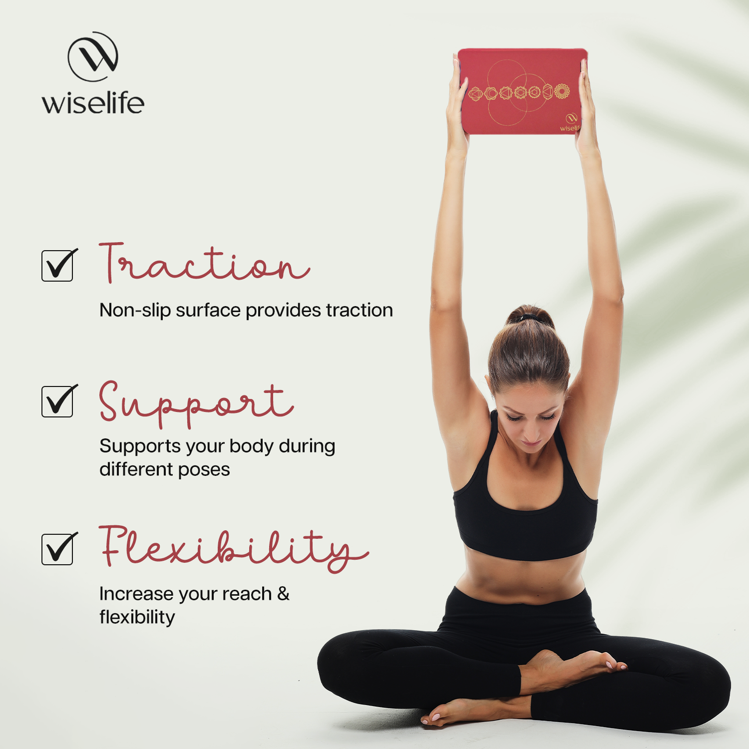 - SUPERIOR TRACTION, FLEXIBILITY & SUPPORT: The Wiselife Printed Yoga Block offers superior traction and flexibility to help you achieve balance, strength, and stability during challenging yoga poses. Its firm structure supports your practice, whether you're building strength through balance poses or enhancing flexibility during deep stretches