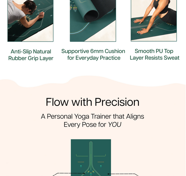 - SUPERIOR TRACTION & GRIP : Designed to offer excellent traction during every pose, even in sweaty sessions, this mat ensures a secure, non-slip surface. The high-quality material provides OPTIMUM grip. Whether you're holding challenging poses or flowing through dynamic sequences, the superior traction enhances your performance and keeps you focused