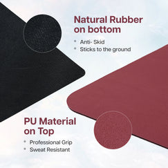 - PREMIUM PU & NATURAL RUBBER : The top layer of the mat is made from a high-quality PU which offers exceptional comfort, balance, and a luxurious feel. The 100% natural rubber base provides professional grip and stability, ensuring your mat stays securely in place during every pose