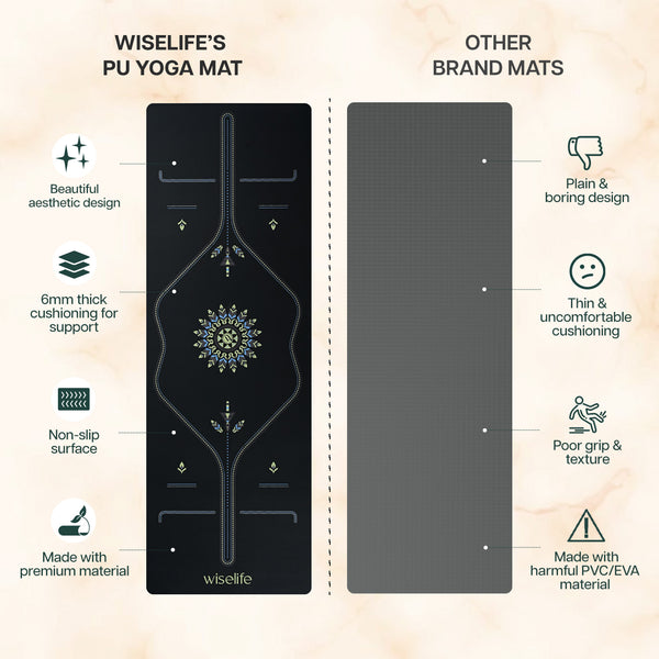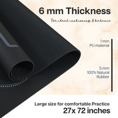 - PREMIUM PU & NATURAL RUBBER : The top layer of the mat is made from a high-quality PU which offers exceptional comfort, balance, and a luxurious feel. The 100% natural rubber base provides professional grip and stability, ensuring your mat stays securely in place during every pose