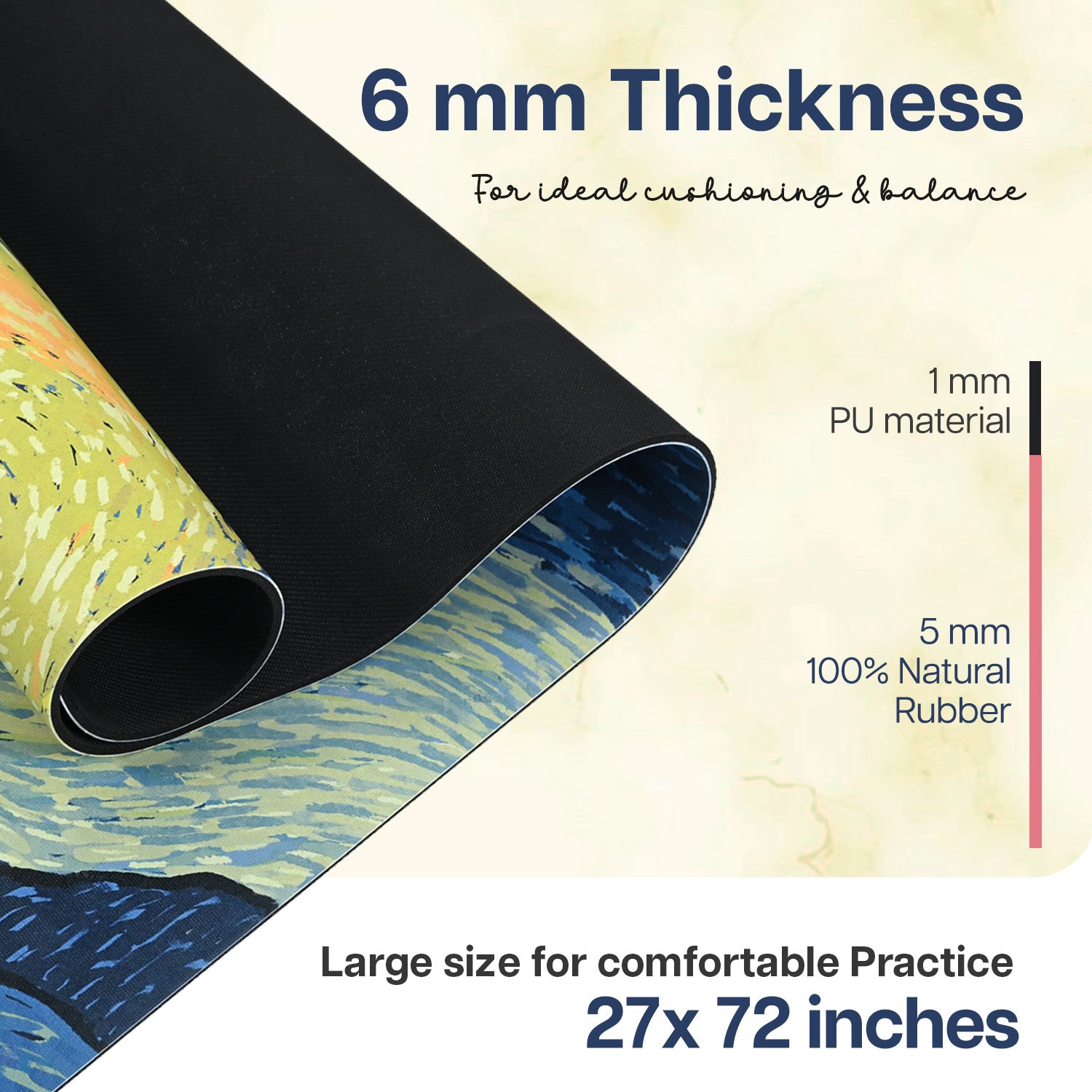 PU & Natural Rubber Yoga Mat - 6mm, Starry Night