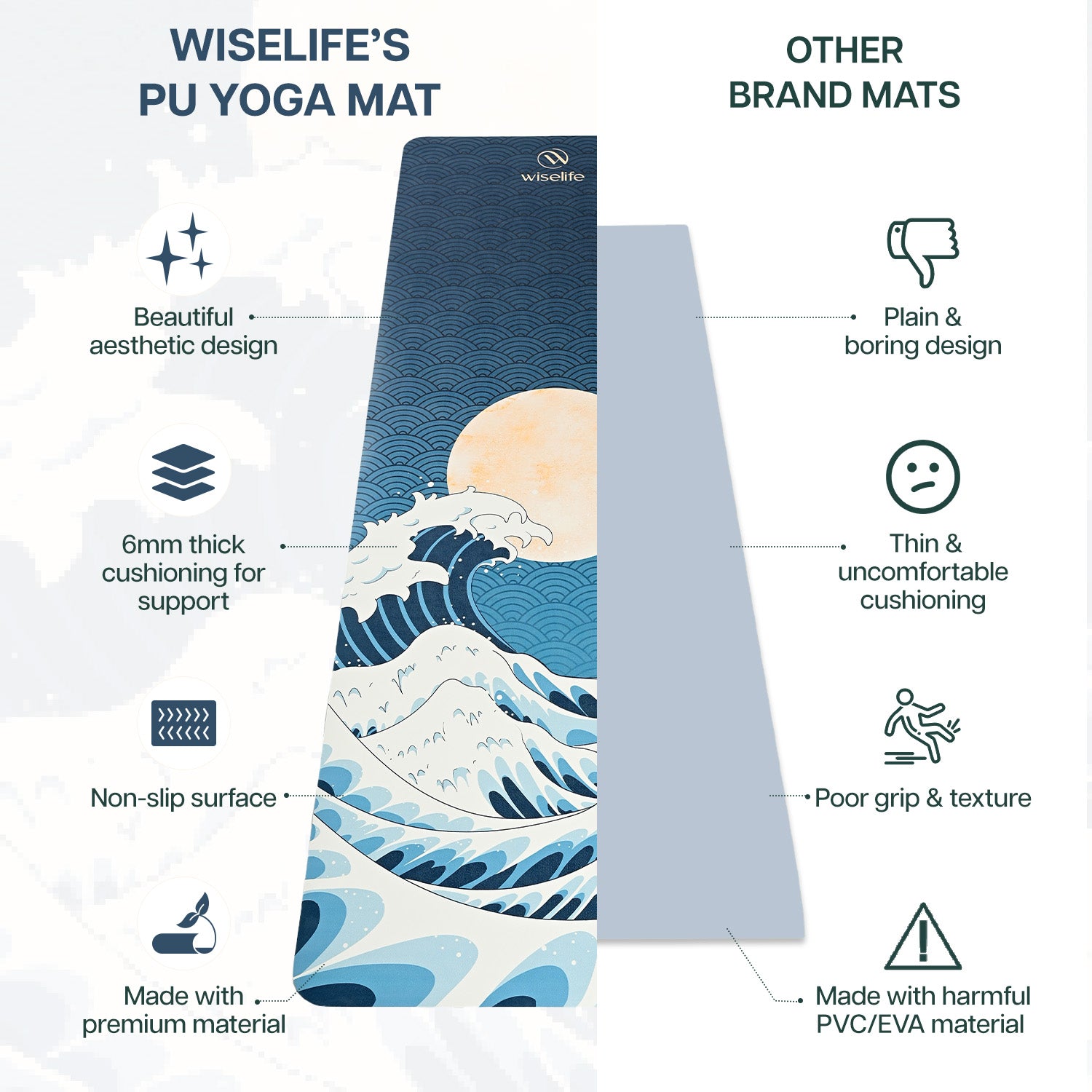 - PREMIUM PU & NATURAL RUBBER : The top layer of the mat is made from a high-quality PU which offers exceptional comfort, balance, and a luxurious feel. The 100% natural rubber base provides professional grip and stability, ensuring your mat stays securely in place during every pose