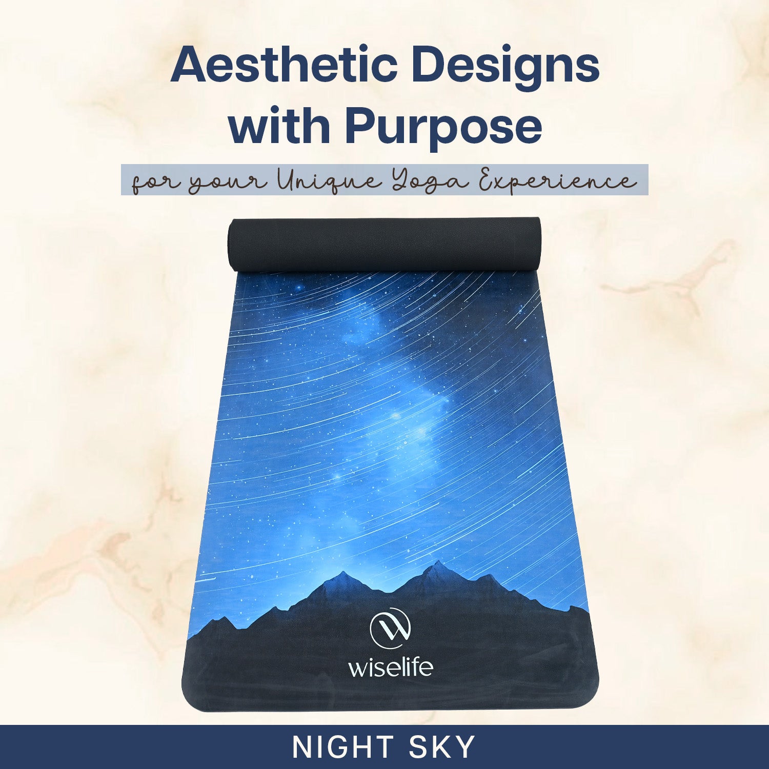 PU Printed & Natural Rubber Yoga Mat - 6mm, Night Sky