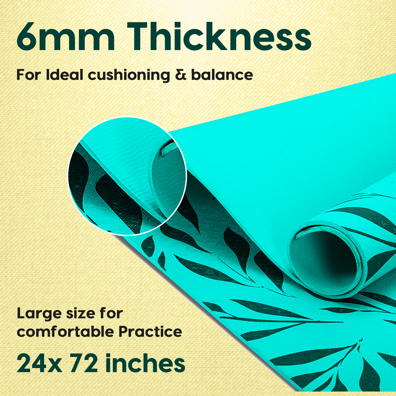 - OPTIMUM THICKNESS, LONG & WIDE DIMENSIONS : Designed to offer an optimum balance, comfort, and stability, this mat supports your joints while maintaining a firm, grounded surface. Extra-long and wide (72” x 24”) to comfortably fit all body types. The premium thickness provides cushioning for comfort, while ensuring stability during intense poses