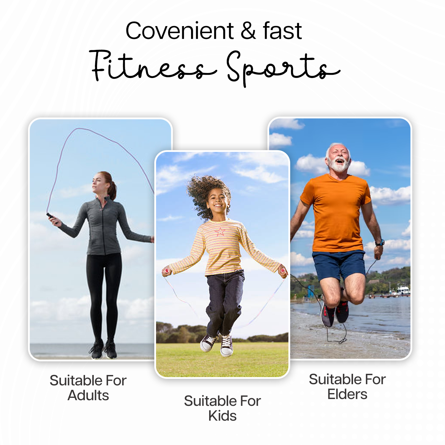 - TANGLE-FREE & ADJUSTABLE LENGTH: Designed with a 360° ball-bearing system, this skipping rope ensures smooth, fast rotations without kinks, twists, or tangles. The 9.2 ft cable is fully adjustable, making it suitable for men, women, and kids of all sizes, just customize the length to match your height and jump freely