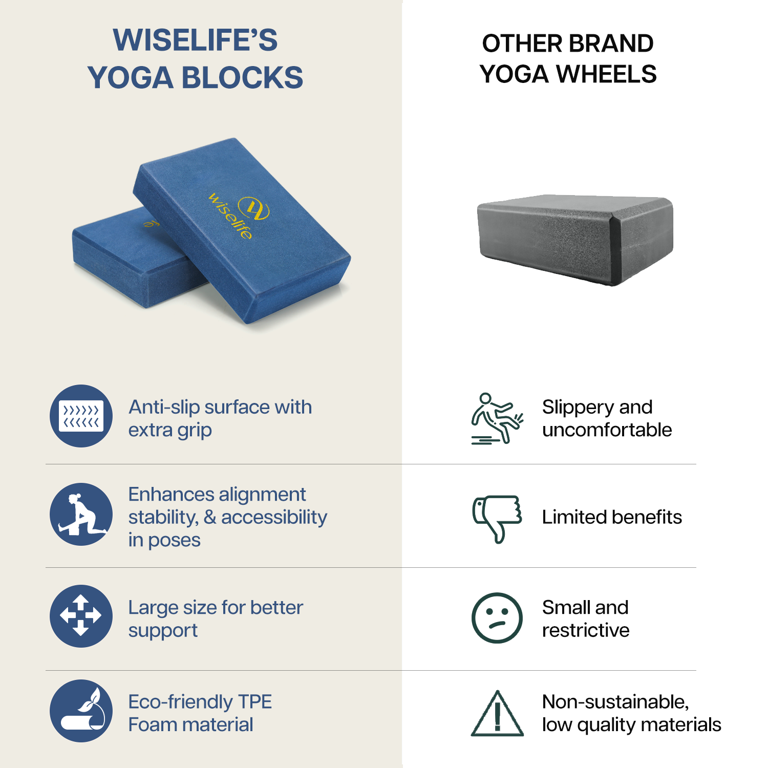 - VERSATILE FOR ALL TYPES OF PRACTICE: Designed to support a wide range of fitness activities, the Wiselife Sleek Yoga Block is perfect for yoga, Pilates, meditation, stretching, physical therapy, and core strengthening. Its multifunctional use makes it a must-have accessory for home workouts, studio sessions, and travel routines alike