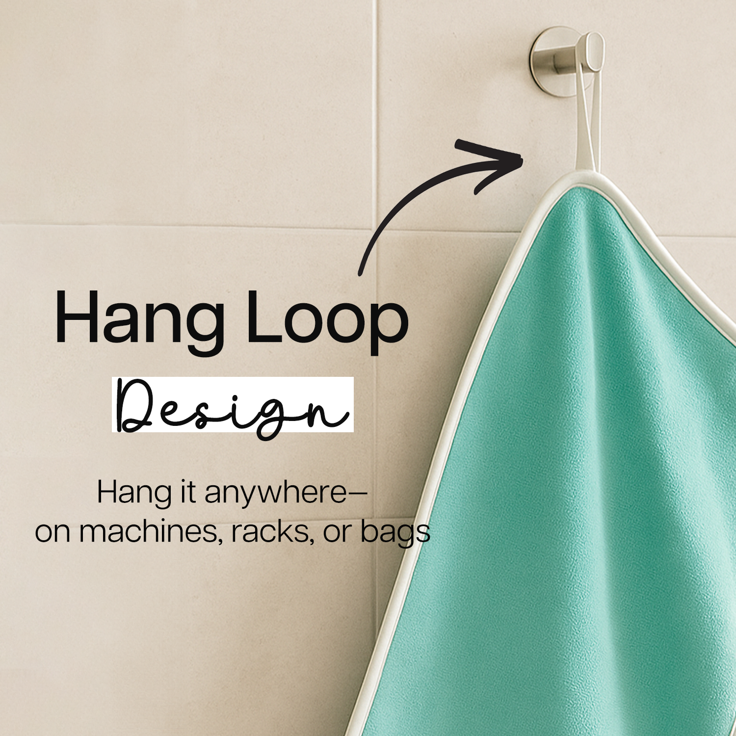 No more tossing towels on benches or floors. The attached hook lets you hang it up neatly on gym equipment or bathroom hooks, keeping it clean and within reach.