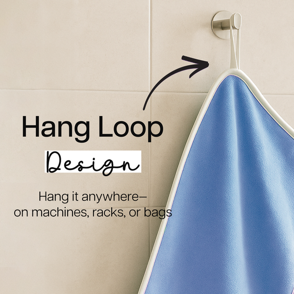 No more tossing towels on benches or floors. The attached hook lets you hang it up neatly on gym equipment or bathroom hooks, keeping it clean and within reach.