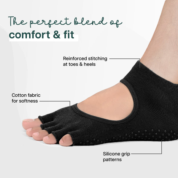 Crafted from high-quality cotton, the socks offer a soft, breathable feel that keeps your feet cool and comfortable throughout your practice. Ideal for both warm and cool environments.