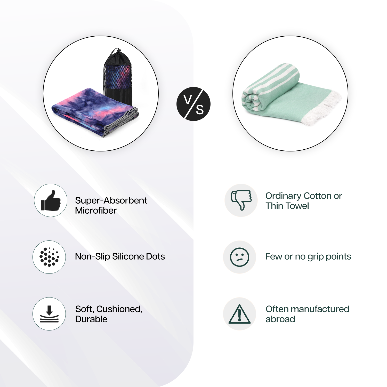 Whether you’re into hot yoga, pilates, or floor workouts, this towel is your go-to. Built with both function and style in mind to elevate your practice from mat.
