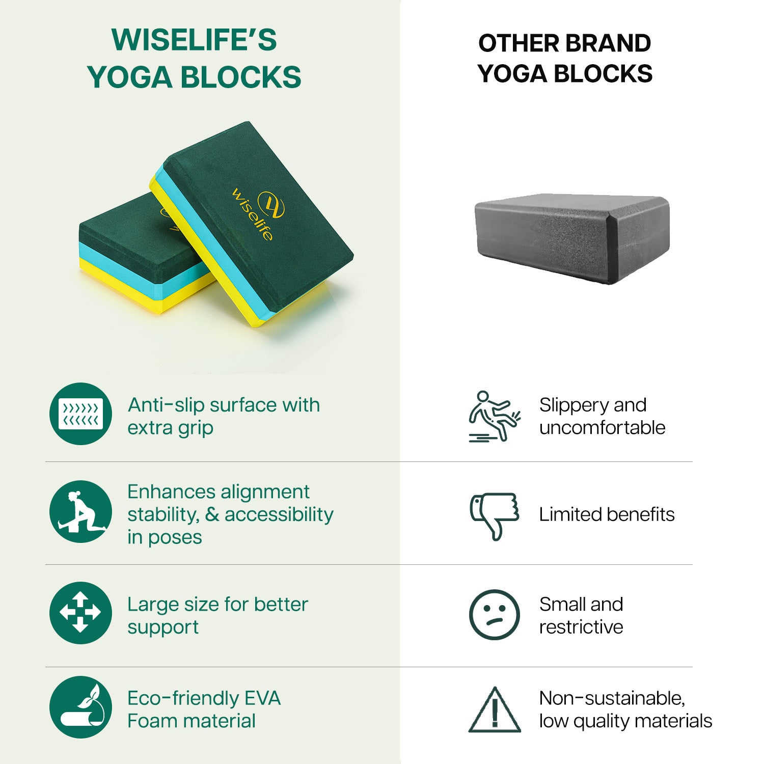 - ULTRA DURABLE & LIGHTWEIGHT: Designed for convenience, these lightweight pro yoga blocks are easy to carry, stack, and store. Their compact and travel-friendly build makes them the perfect addition to your yoga bag or gym gear. Whether you’re practicing at home, in the studio, or on the road, the Wiselife Pro Yoga Blocks offer consistent support and stability wherever your journey takes you
