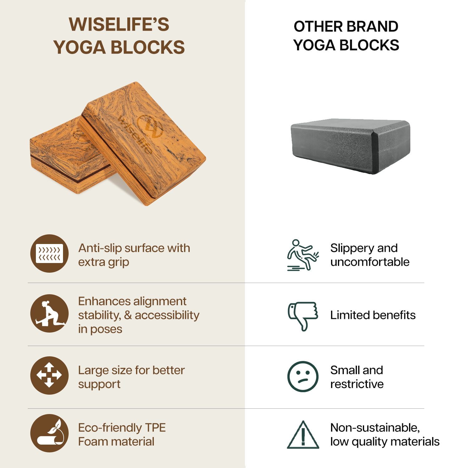 - ULTRA DURABLE & LIGHTWEIGHT: Designed for convenience, these lightweight pro yoga blocks are easy to carry, stack, and store. Their compact and travel-friendly build makes them the perfect addition to your yoga bag or gym gear. Whether you’re practicing at home, in the studio, or on the road, the Wiselife Pro Yoga Blocks offer consistent support and stability wherever your journey takes you
