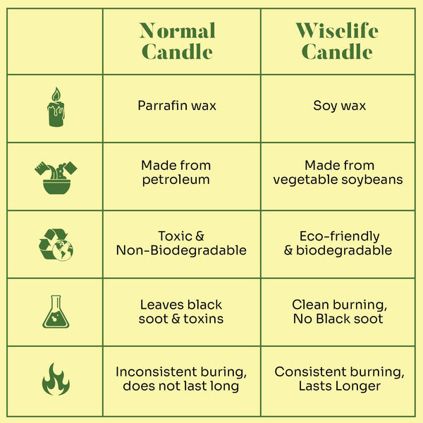 • Premium SOY WAX : Made from Premium soy wax, which produces 90 percent less soot than paraffin, which results in emitting less smoke in the air.