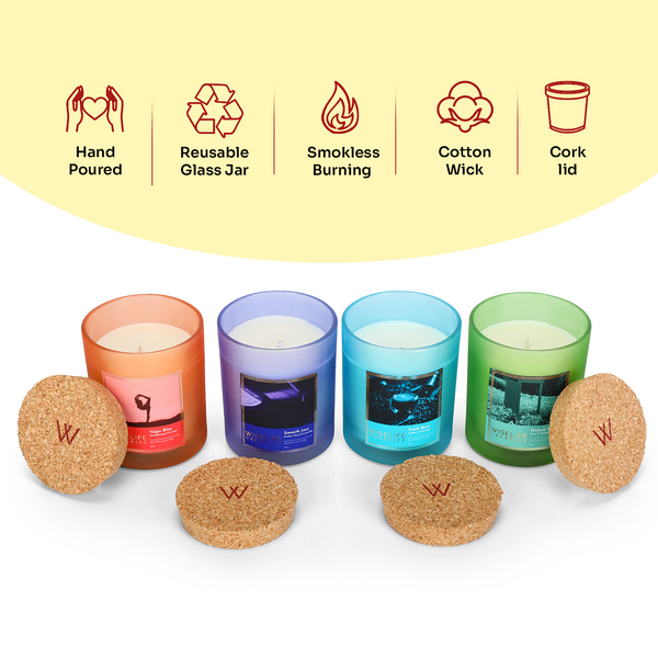 • 100% COTTON WICK & PREMIUM GLASS JAR WITH CAP : Glass Jar is reusable & recyclable. The cap makes the candle easy to use multiple times without losing the original fragrance.