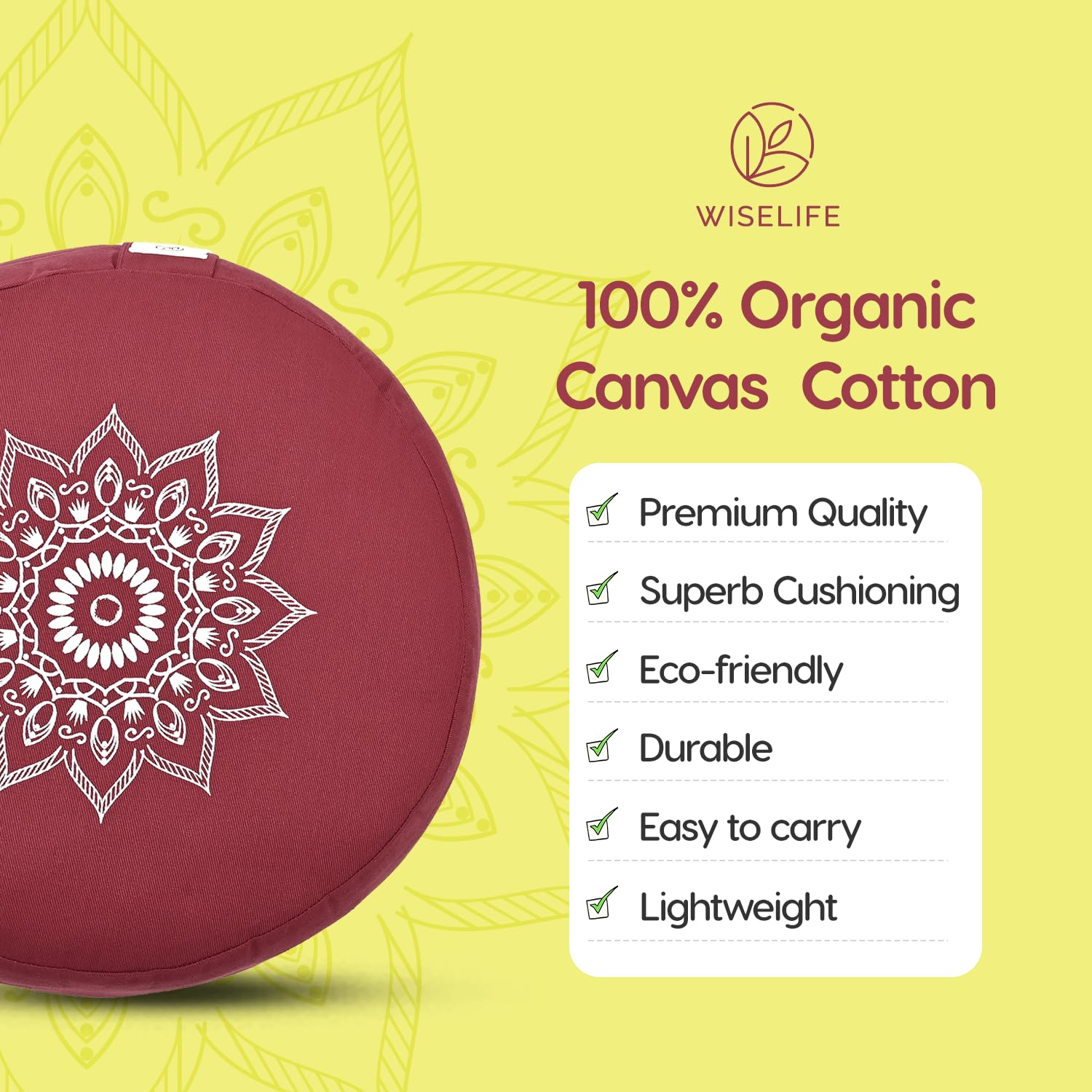 - 100% COTTON FOR BREATHABLE COMFORT: Made from 100% organic and eco-friendly cotton, this meditation cushion offers a natural, breathable surface that feels soft against the skin. The sustainable fabric promotes airflow and ensures a grounded, chemical-free yoga and meditation experience