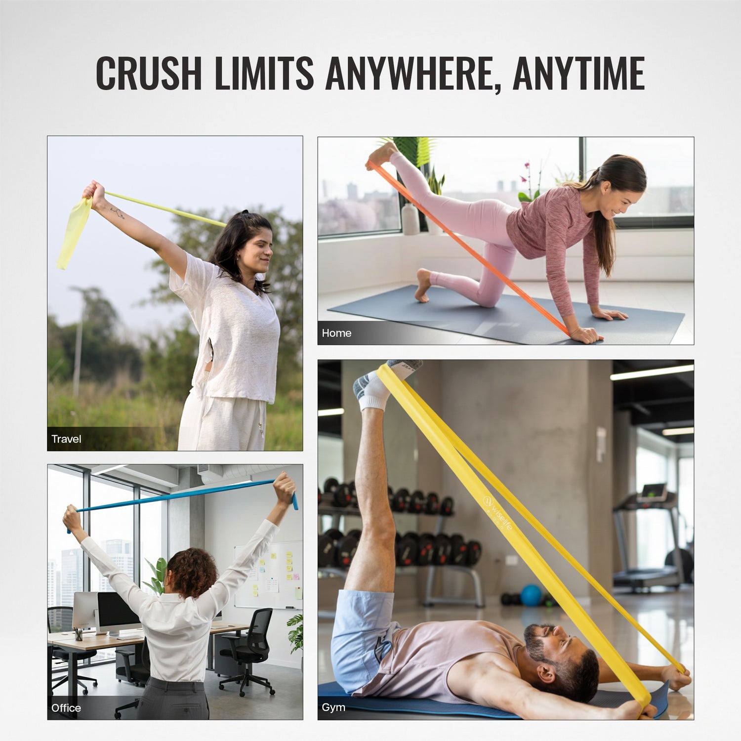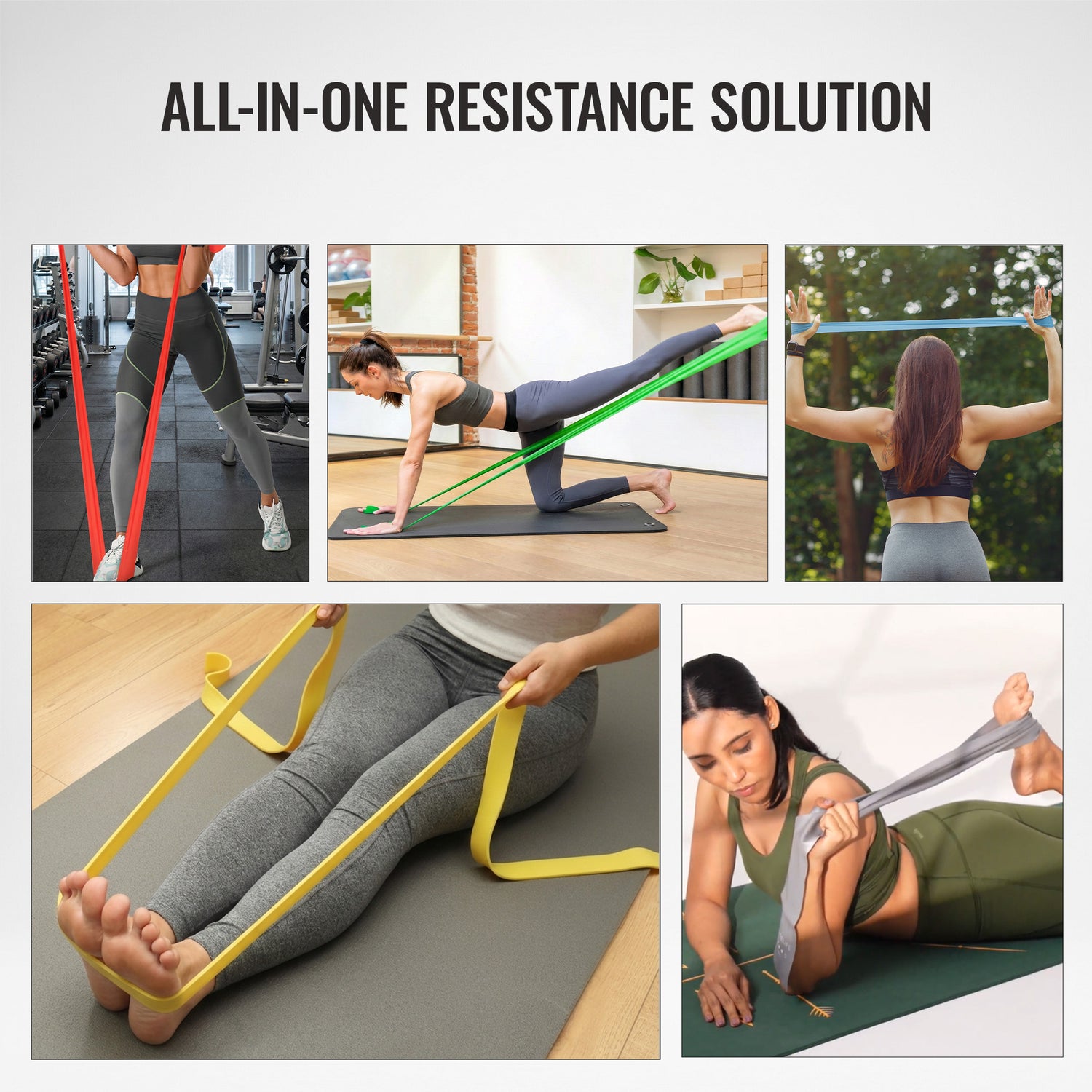 MULTIPLE RESISTANCE OPTIONS: Featuring a variety of clearly color-coded resistance levels, these bands allow users to select the perfect tension for any activity, from gentle rehabilitation to intensive strength training. Easily combine two or more bands to fine-tune the resistance, enabling a highly customizable workout that evolves with your progress and goals