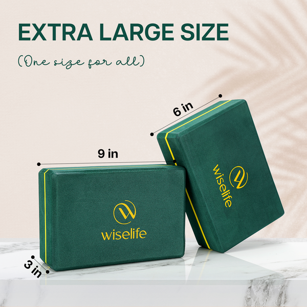 - EXTRA-LARGE SIZE FOR SUPERIOR STABILITY: This set of two Wiselife Pro Yoga Blocks, each measuring 9 x 6 x 3 inches, offers exceptional stability, balance, and support during yoga and fitness routines. The larger size provides a broader surface area for better grip and weight distribution, making it perfect for deep stretches, seated poses, balance exercises, and added lift in challenging yoga postures.