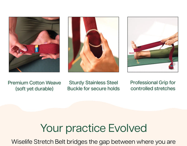 - EASE OF YOGA : WiseLife's yoga stretch belt is thoughtfully designed to fit comfortably in your hands and loop securely around your feet, offering maximum support as you move through various poses. It helps improve your range of motion and reduces the risk of strain or injury during intensive yoga sessions, making it ideal for safe and consistent practice