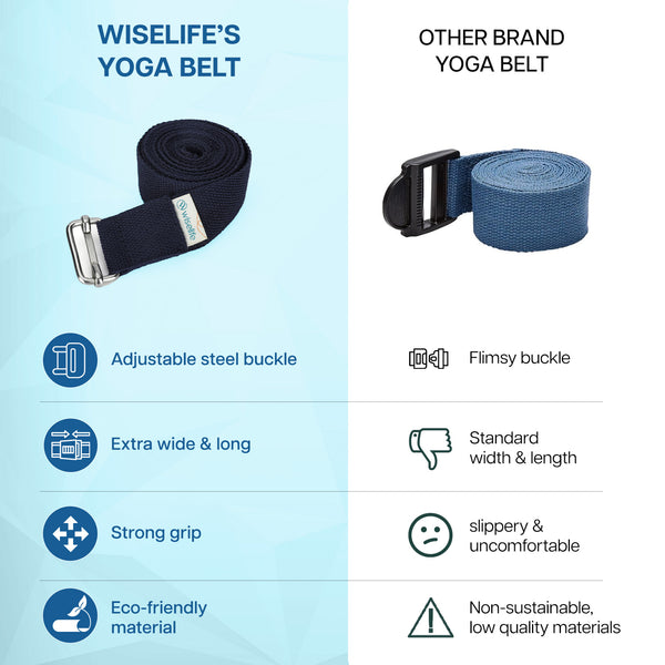 - EASE OF YOGA : WiseLife's yoga stretch belt is thoughtfully designed to fit comfortably in your hands and loop securely around your feet, offering maximum support as you move through various poses. It helps improve your range of motion and reduces the risk of strain or injury during intensive yoga sessions, making it ideal for safe and consistent practice