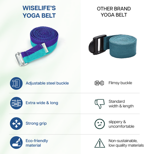 - EASE OF YOGA : WiseLife's yoga stretch belt is thoughtfully designed to fit comfortably in your hands and loop securely around your feet, offering maximum support as you move through various poses. It helps improve your range of motion and reduces the risk of strain or injury during intensive yoga sessions, making it ideal for safe and consistent practice