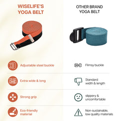 - EASE OF YOGA : WiseLife's yoga stretch belt is thoughtfully designed to fit comfortably in your hands and loop securely around your feet, offering maximum support as you move through various poses. It helps improve your range of motion and reduces the risk of strain or injury during intensive yoga sessions, making it ideal for safe and consistent practice