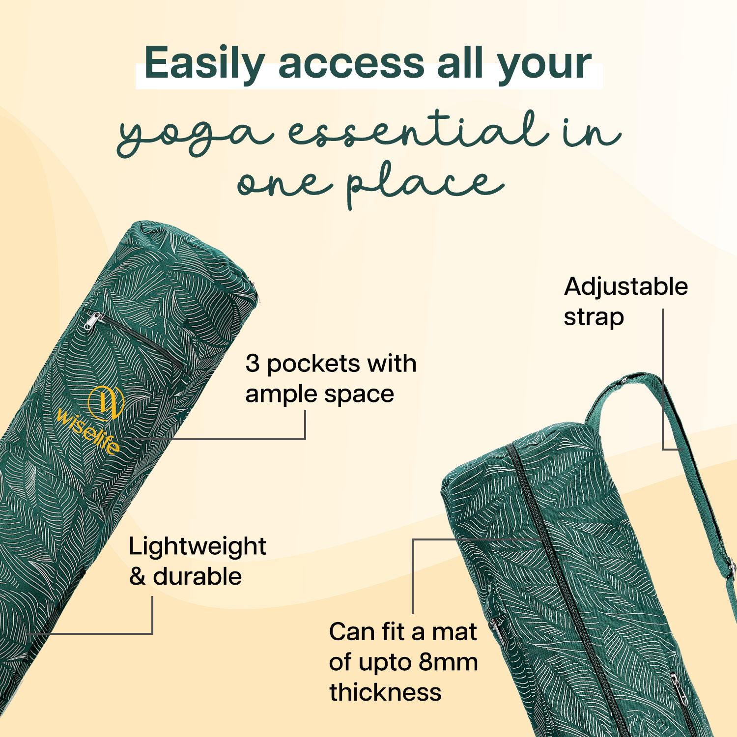 - CONVENIENCE, COMFORT & STYLE: Featuring a sleek zipper design, a carrying handle, and an adjustable shoulder strap, this bag ensures easy access, comfort, and style while carrying your mat and other essentials