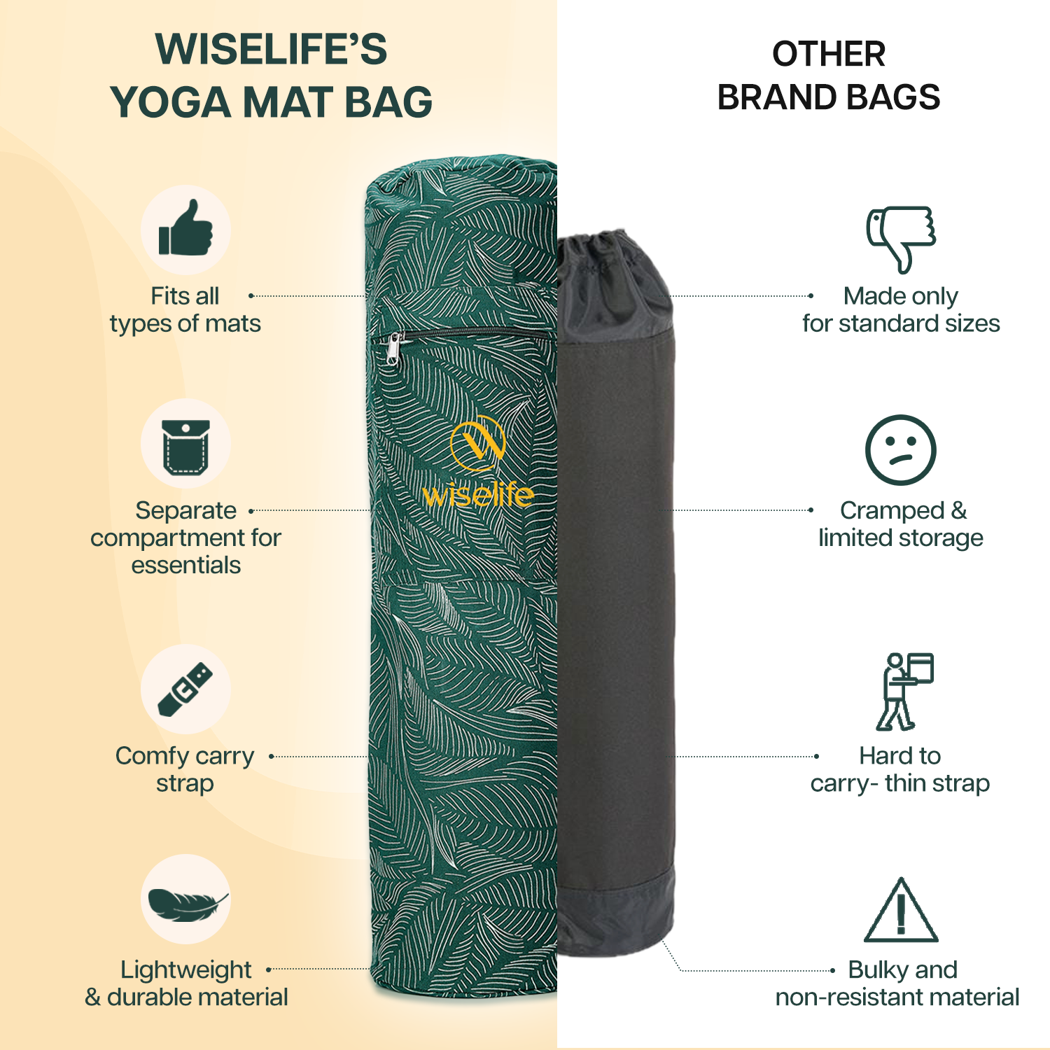 - ULTRA DURABLE & VERSATILE : Made from high-strength, tear-resistant fabric, this yoga mat bag is built for everyday use. Lightweight yet resilient, it ensures easy portability and lasting protection for your mat and essentials. Plus it is easy to wipe clean, keeping your bag fresh and ready for every session, whether at the studio, gym, or outdoors.