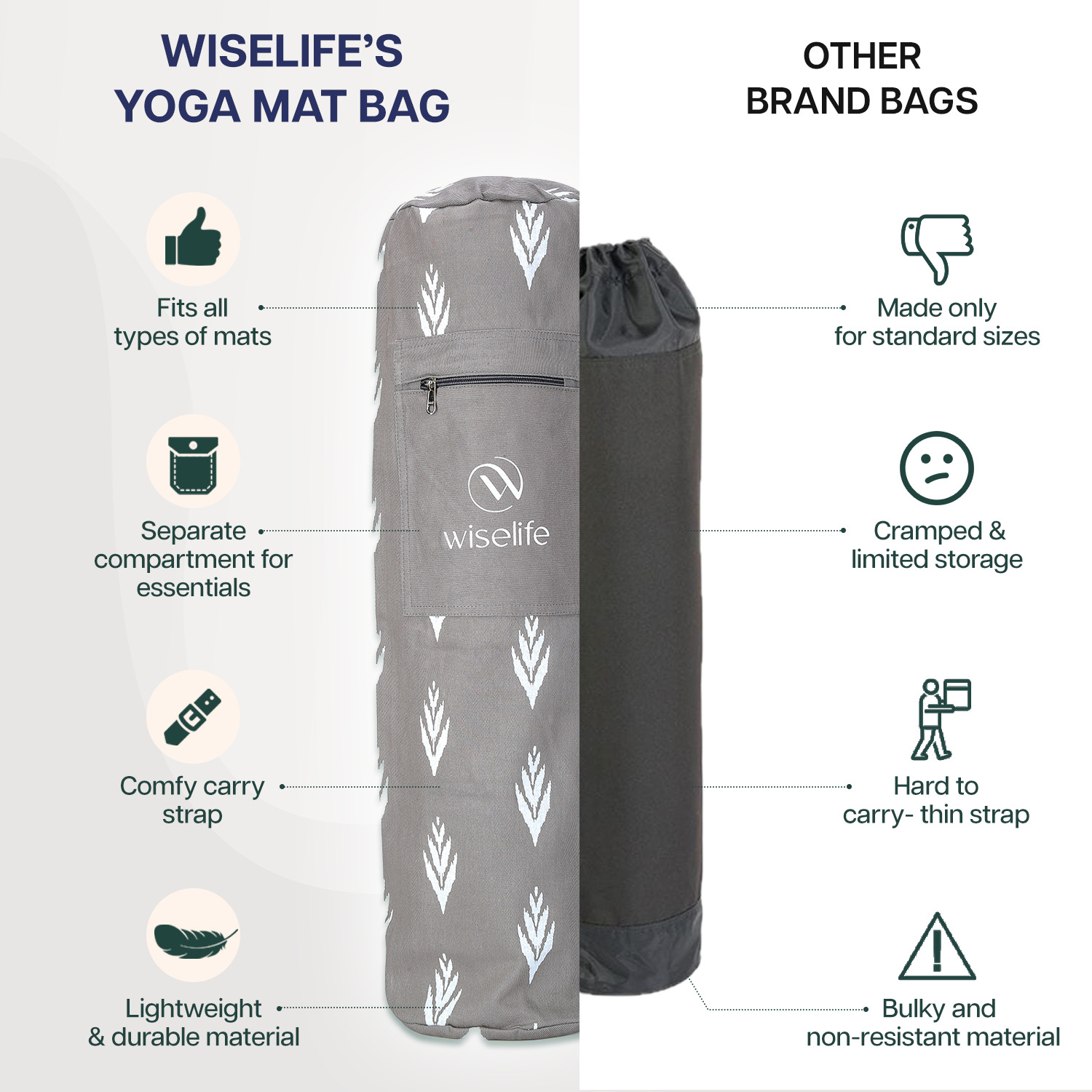 - ULTRA DURABLE & VERSATILE : Made from high-strength, tear-resistant fabric, this yoga mat bag is built for everyday use. Lightweight yet resilient, it ensures easy portability and lasting protection for your mat and essentials. Plus it is easy to wipe clean, keeping your bag fresh and ready for every session, whether at the studio, gym, or outdoors.