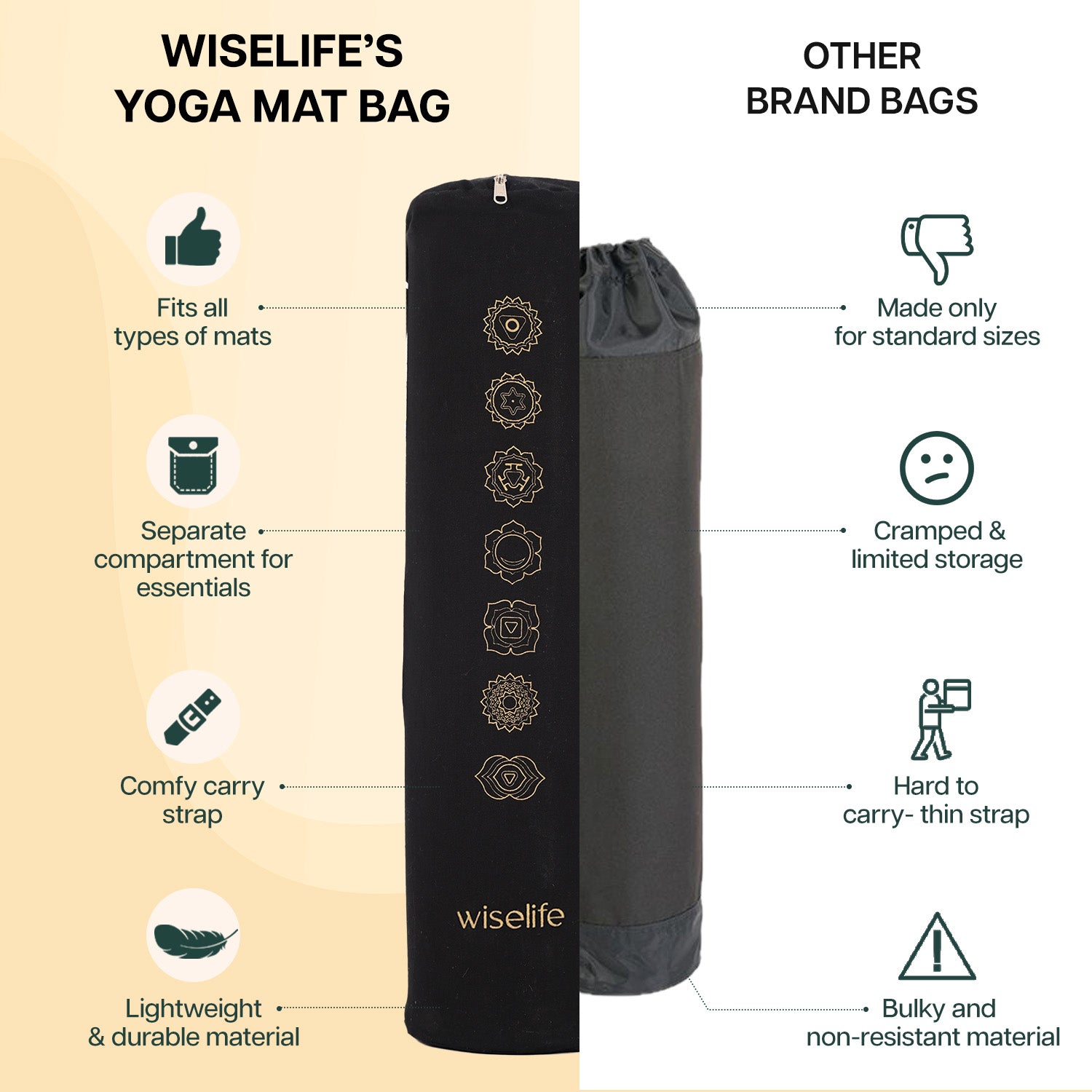 - ULTRA DURABLE & VERSATILE : Made from high-strength, tear-resistant fabric, this yoga mat bag is built for everyday use. Lightweight yet resilient, it ensures easy portability and lasting protection for your mat and essentials. Plus it is easy to wipe clean, keeping your bag fresh and ready for every session, whether at the studio, gym, or outdoors.